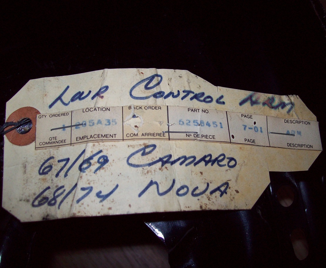 LH NOS Lower A Arm 6258451 1967-69 Camaro Z28 SS Firebird Trans Am 1968-74 Nova SS. Left side complete assembly with GM Ball joint and GM bushings. GM over the Counter Service part with double sided holes to fit many years. Shelf wear. $350 USD plus $35 Shipping.