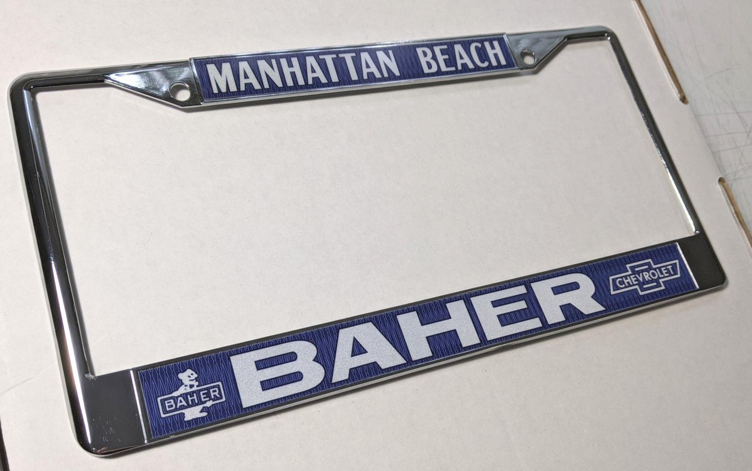 This was a fun Chevrolet dealer license plate frame recreation I completed recently. Baher Chevrolet had a couple locations including Northridge and Hermosa Beach. This one from Manhattan Beach seems much harder to find.