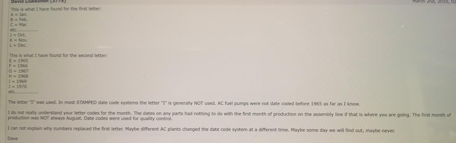 How can I tell the dates on some used fuel pumps I have? If I remember correctly these two came off original Big Block 1969 & 1970 Chevelle's. Any help would be appreciated.
