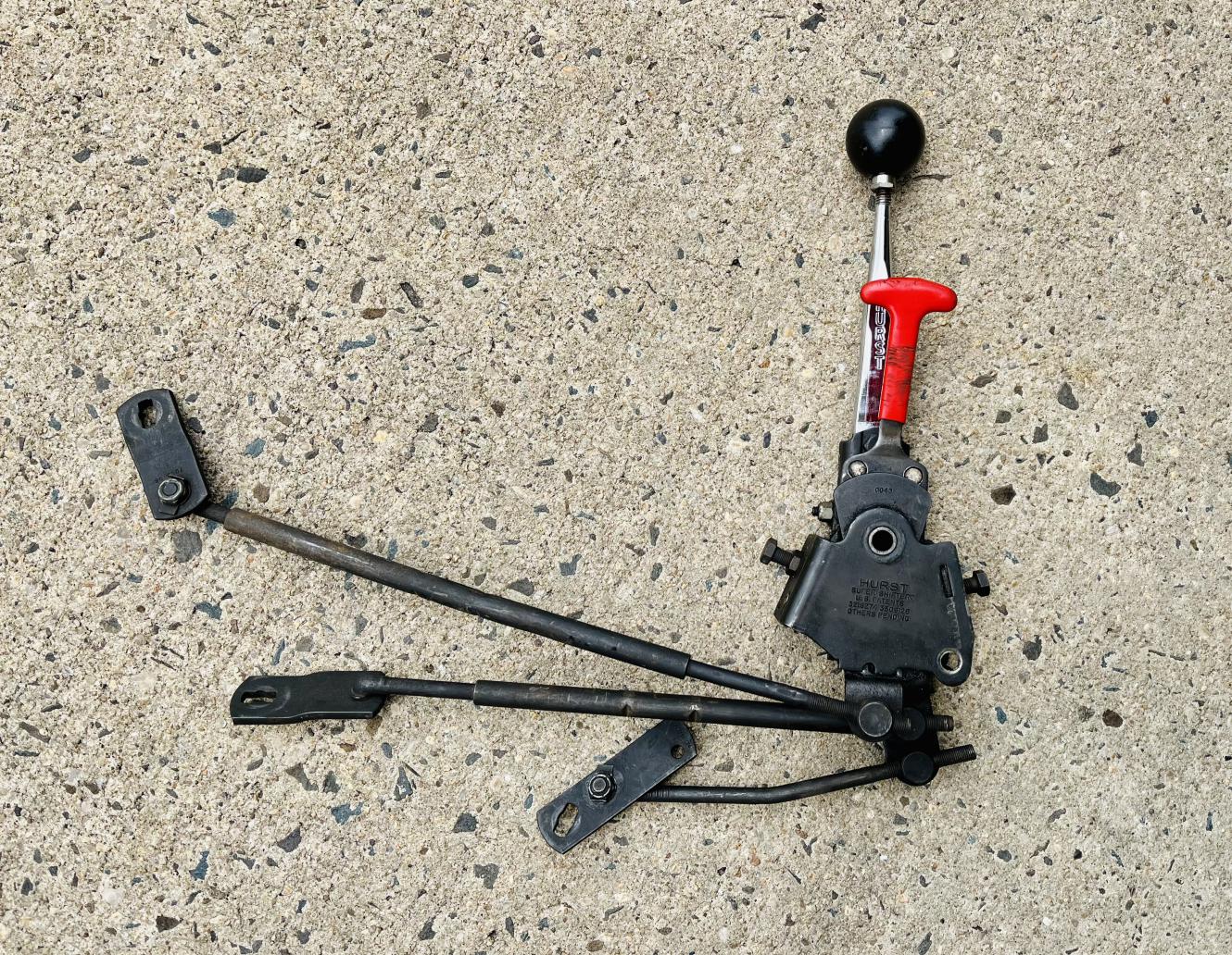 -Hurst Super Shifter 3 with reverse lockout for Muncie 4-speed transmission. It comes with the rods, lever arms, 7238 handle & black knob - (SOLD)