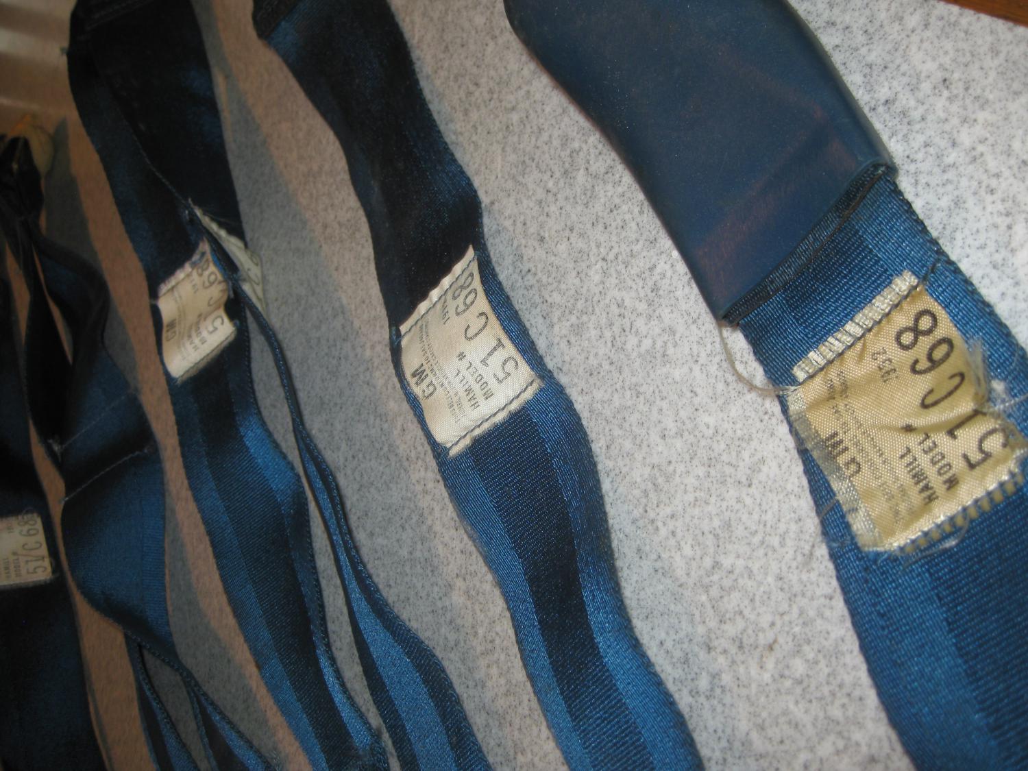 1968 69 Camaro Deluxe Seat Belts Front and Back with original bolts, covers. Retractors work and the lap belts buckles will need work, perfect survivor and belts are tagged 51 C 68.