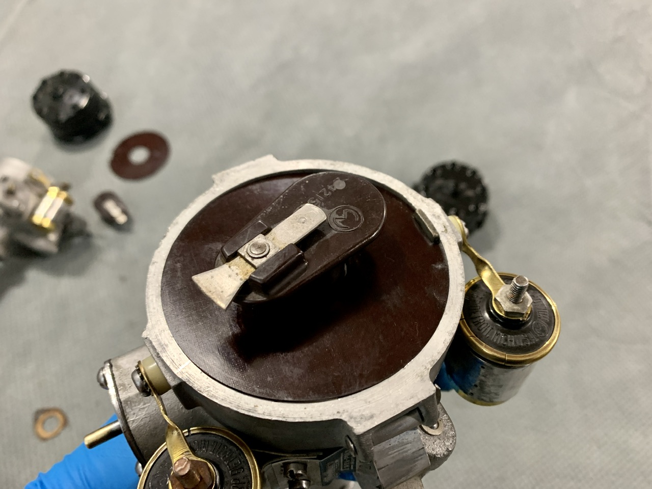 Just finished going through this one. Very clean piece and everything was disassembled, cleaned and moly lube applied to wear surfaces. Points are set to 0.012” and both condensers working from my ohm resistance testing. Body was cleaned to original finish and only item clear coated were the condensers. This was to help seal where the mini cracks are starting to appear. Vacuum advance with a very clean puck, new gasket and advance weights left at their factory setting. What you see is what you get. Bushings looked brand new. Distributor rotor is a good original as well as the cap. Inner bladder is still original 7mm as is the top. $475 plus shipping.