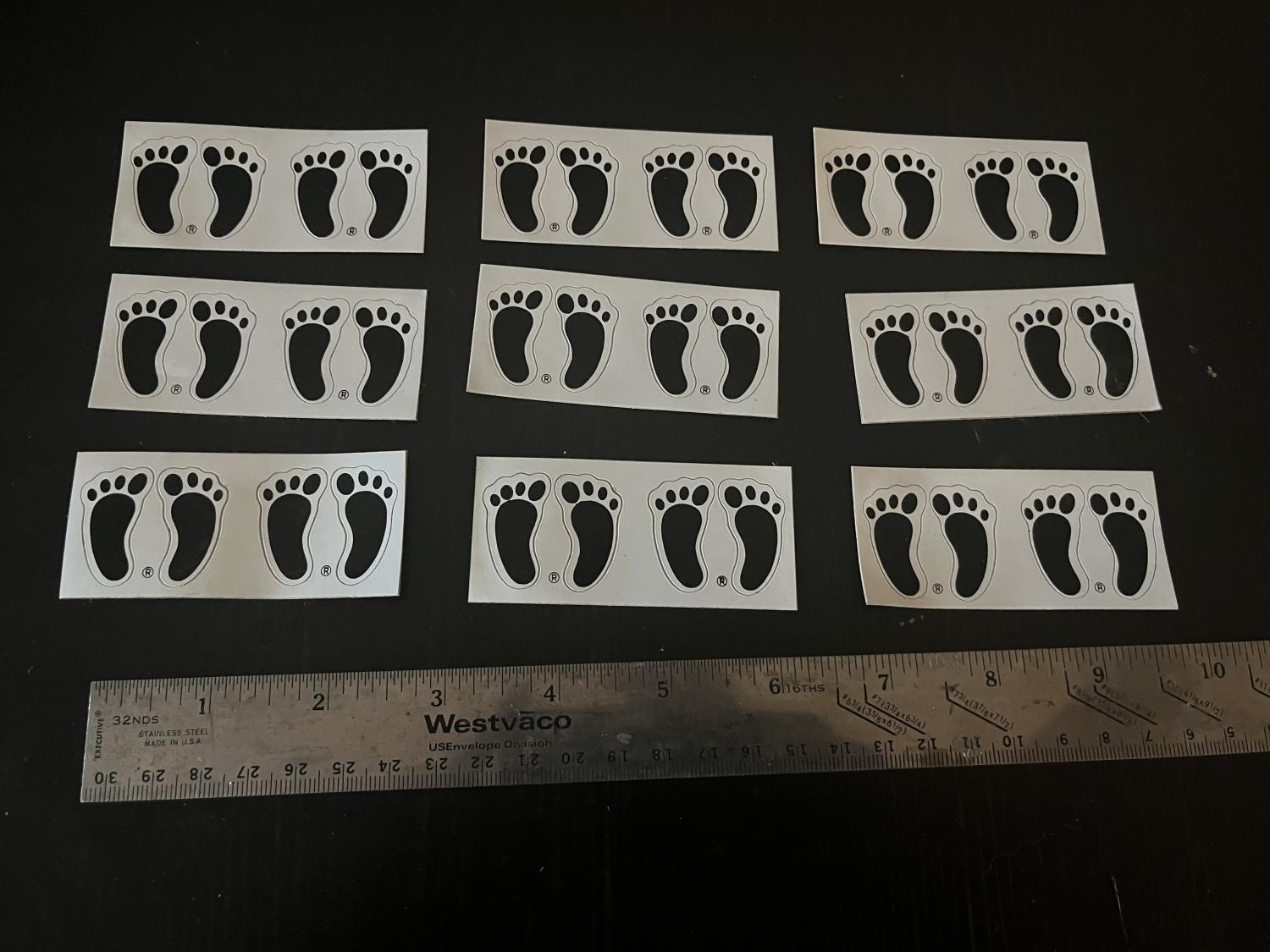 Groovy man! Dig it! Let your freak flag fly! I'm passing these along here at (what I feel are) Friend Prices for sYc members. 10.00 plus 2 first class stamps for 3 sheets of waterslide decals, I'll supply the large envelope. 10.00 plus a #10 SASE for 3 sheets of medium black feet 9389. 10.00 plus a #10 SASE for 3 sheets of medium white feet 9388. 10.00 plus a #10 SASE for 9 sheets of small feet. 10.00 plus a #10 SASE for a patch. PM me for my mailing address, you can mail the dough in cash and a #10 SASE for return shipping please. PM me for bundles. Keep on Truckin' Cats, Anthony |