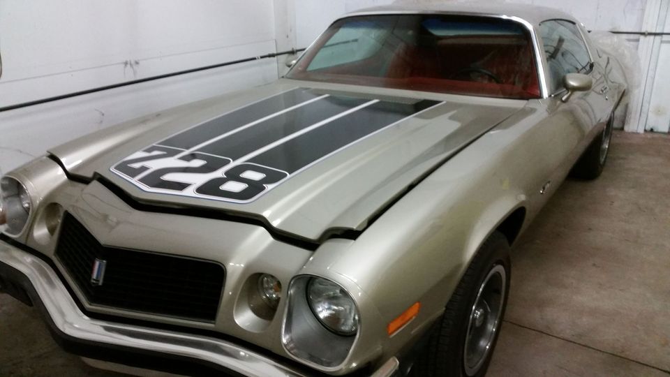 Here's a pretty one - very original '74 Z28, 4-speed, silver over red interior.
