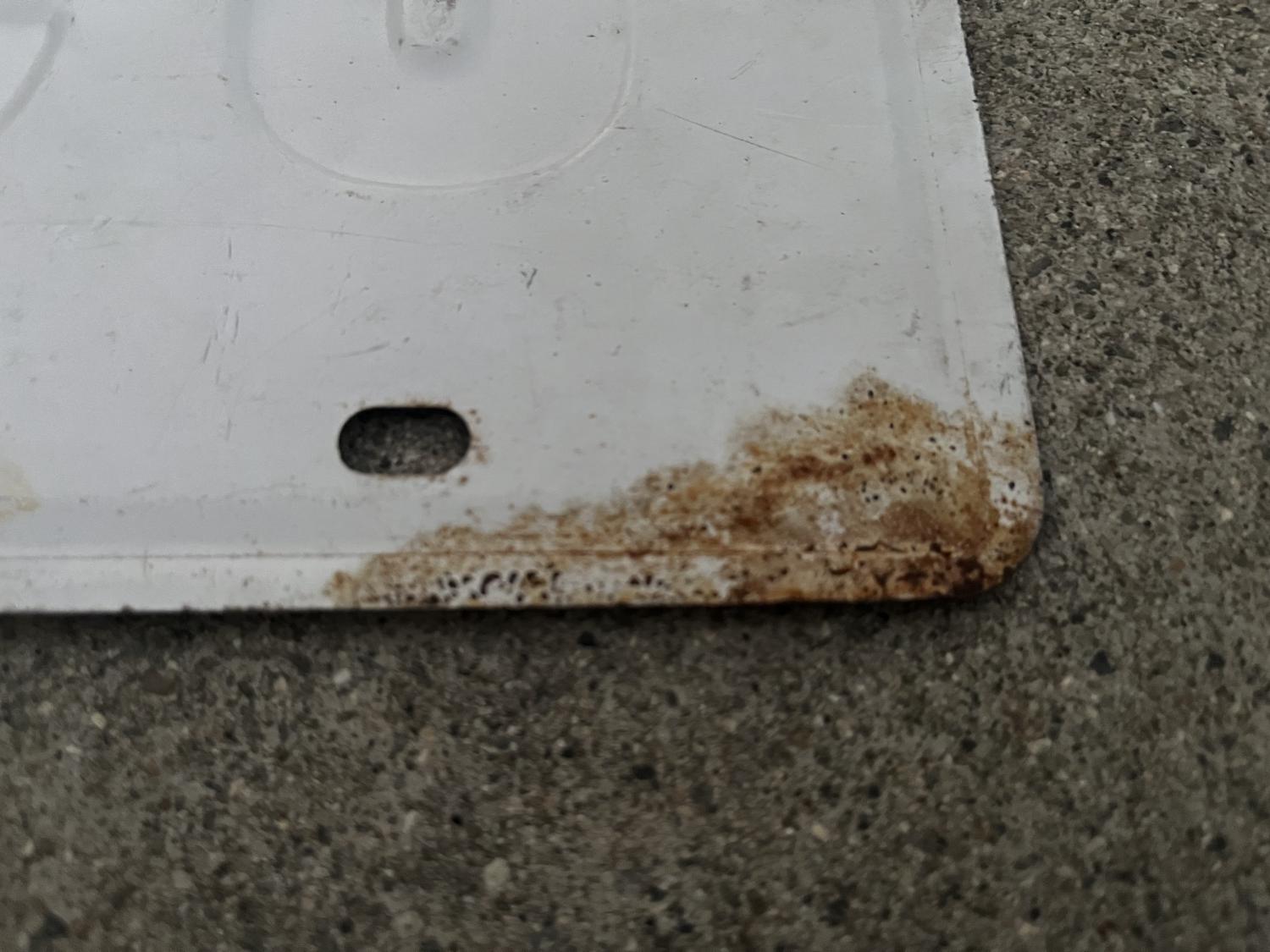This is an original 1971 slogan USA-1 plate; the last of these gold embossed plates. It's genuine based on the patina, it being heavy gauge steel, (slight rusting on bottom corner as shown & it's magnetic) and the small / narrow bolt hole slots. The back is painted white and seems original to me. I have not attempted to clean it at all; it may clean up a bit with some care. See photos. 220.00 PPFF shipped to the US. Cheers all, Anthony |