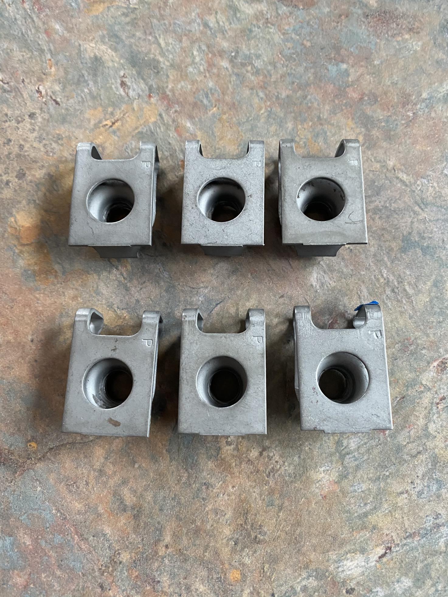 Pulled these off a 68 Camaro 30 years ago. GM #3992755. One has a broken leg as seen in last picture next to blue tape. Had them media blasted and clear coated them to prevent rust. Threads are nice also. These have the letter P stamped on them. $30 includes shipping. F and F PayPal works. Jim