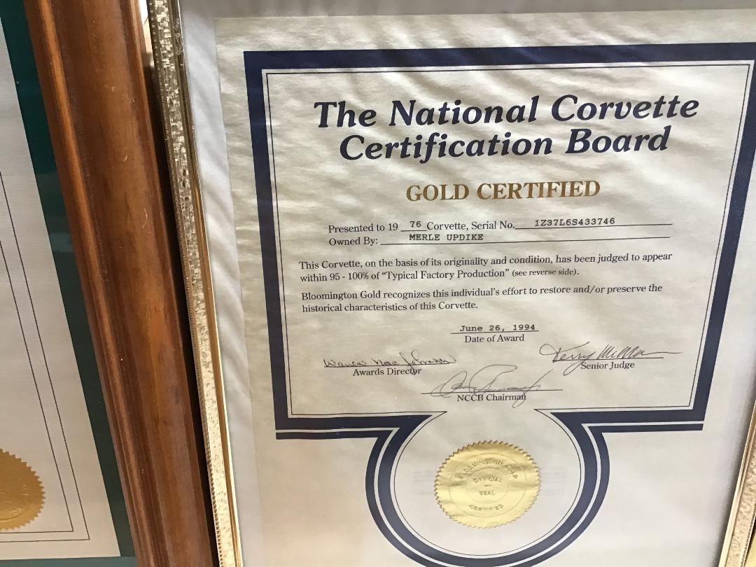 1976 Corvette Flame Orange / Saddle Interior. NCRS Top Flight, Bloomington Gold Certified, Chevy Vette Fest Gold Spinner and Showcase Certified along with a Triple Crown Award. Original Paint, Interior and Drivetrain. Loaded with every option available.  Completely serviced to be driven or shown, everything works as designed.  The nicest un-molested, original Corvette I have seen in a very long time, a True Time Capsule.  All documentation from new includes all awards, and judging sheets. $32,500.00  PM me for any questions or comments.  Bill