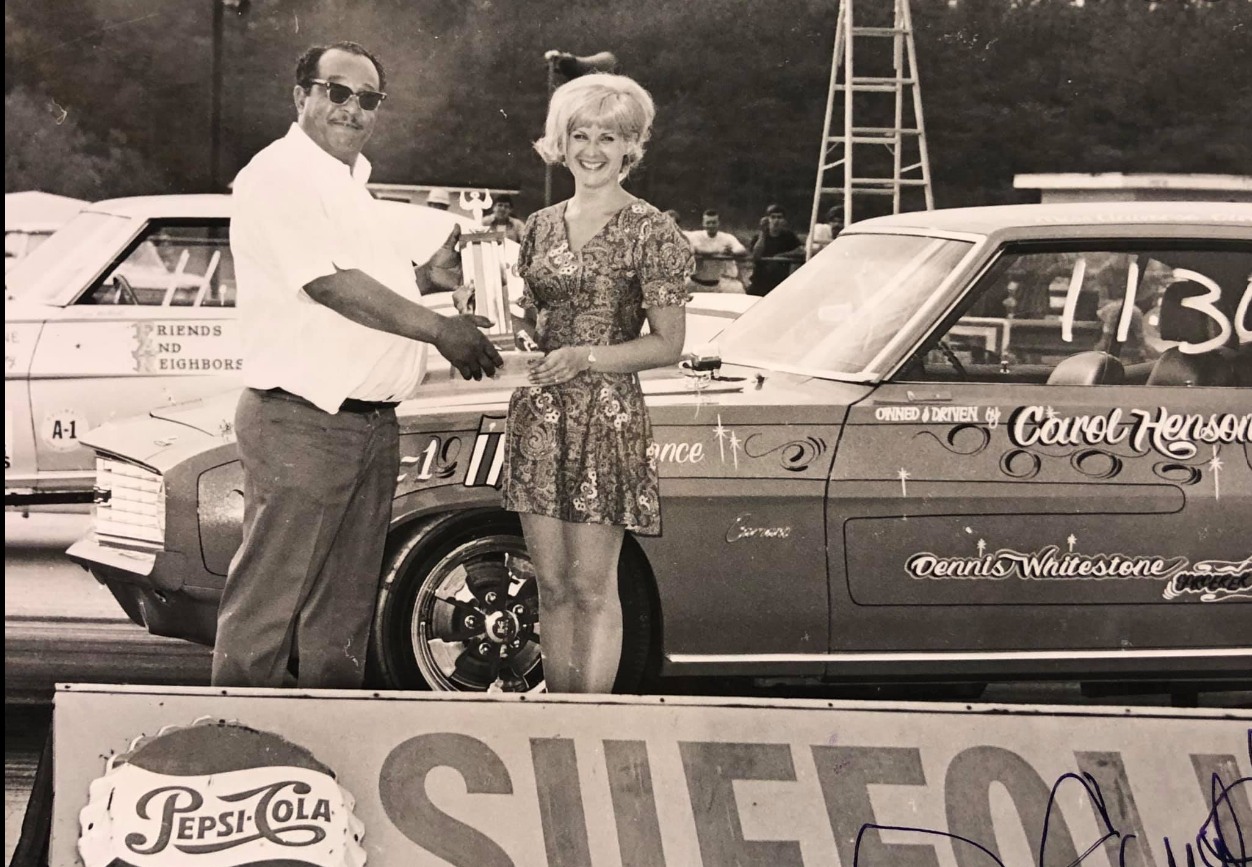 This first photo is an interesting photo of Carol Henson with the ‘Warlock’ Camaro and in the back ground is Fan Mellott with a Camaro named ‘Friends and Neighbors’.