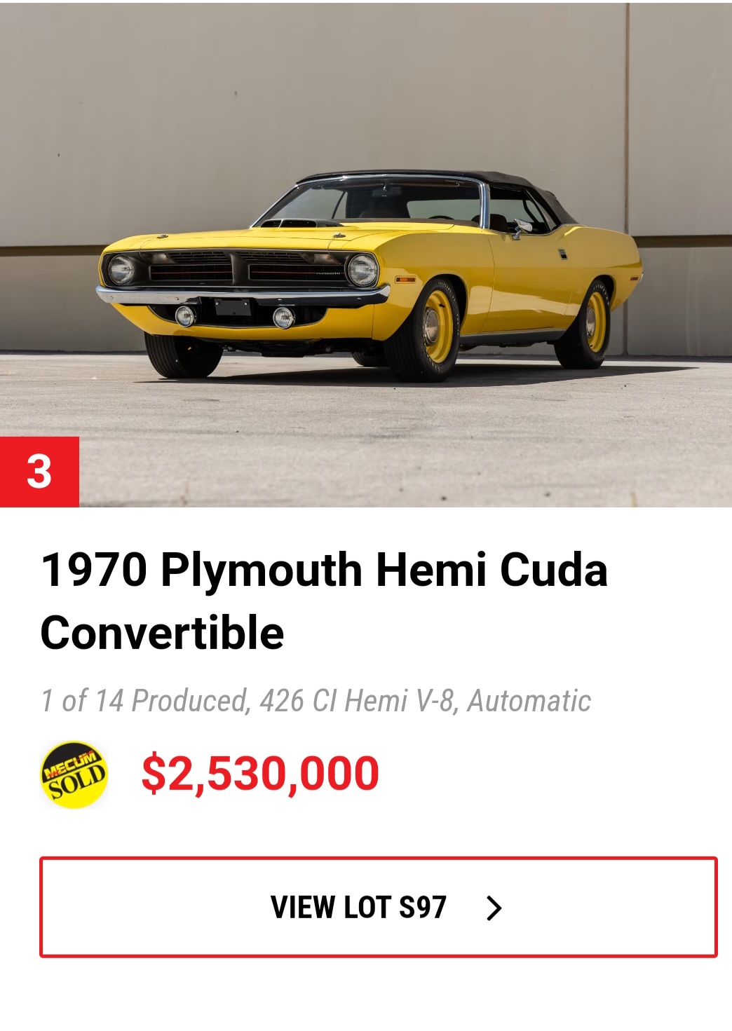 Here are the top 4 Saturday results. Amazing $ for these cars.