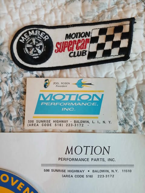 So, I have attached pictures and in my mind (at least) an estimated value. Am I too high? Low? Just right? There has never been anything like this available for sale. How do you put a value on something that's never been available? You get a Motion Performance Distributor Door Sticker, Motion Supercar Club Bumper Sticker, Supercar Club patch, Supercar Club side window sticker, 1 sheet Motion Performance Letterhead (with Joels signature stamp), 3 Motion Stickers. 2 from the 60's and a signed one "Mr. Motion" from 2005 and early joel Rosen MP Business card. Also a post card of Joels Cobra at the track. Will stamp everything with his signature stamp and will substitute a Supercar Club Letterhead in lieu of the MP letterhead if you wanted. $1500 for the lot. Also have Joel's Supercar Club Keychain for a grand (firm) Will provide COA with the lot. Comments?