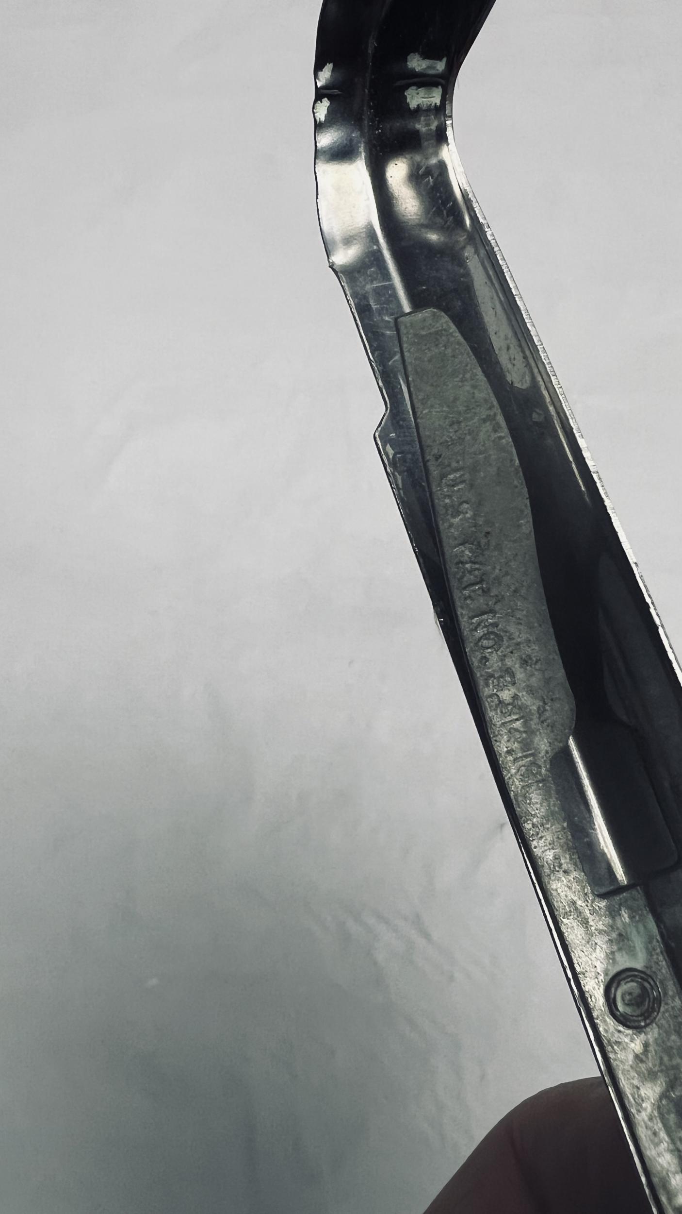1963-1975 GM Corvette Stainless Steel License Plate Surround Frame 3797485 is the part number. This is used but in really nice shape. Has the patent numbers on the spring clips. Has two “small” indents likely from a screwdriver putting the plate screws on. $175 shipped.