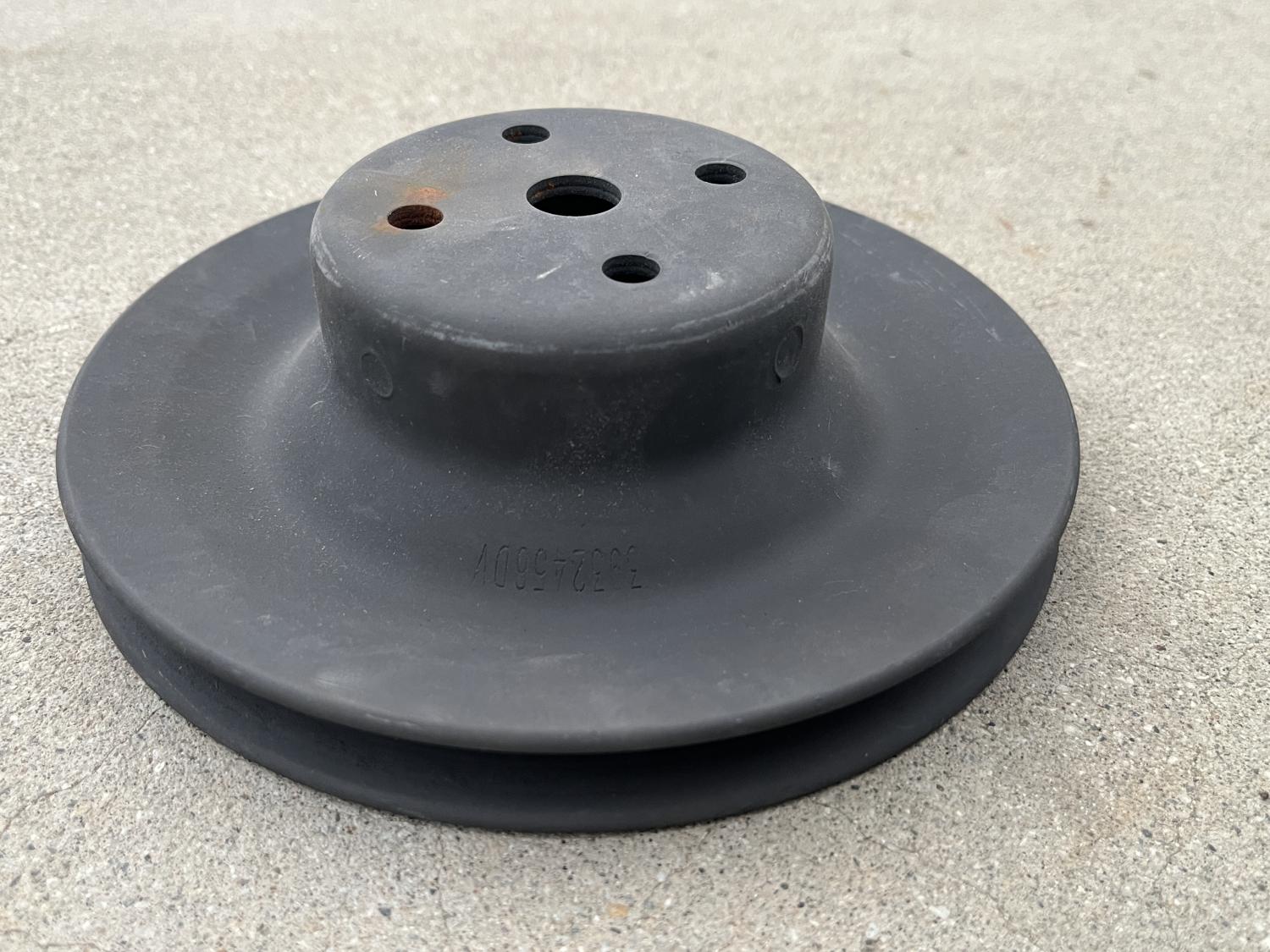 I have a 69 Z28 3932456 DV water pump pulley here. Clearly original, see photos below. Recently cleaned, restored, and phosphate plated. Nice, clear stamping. Cheers, Anthony |
