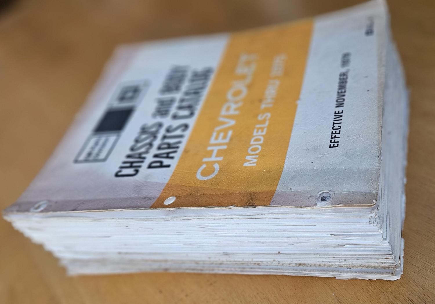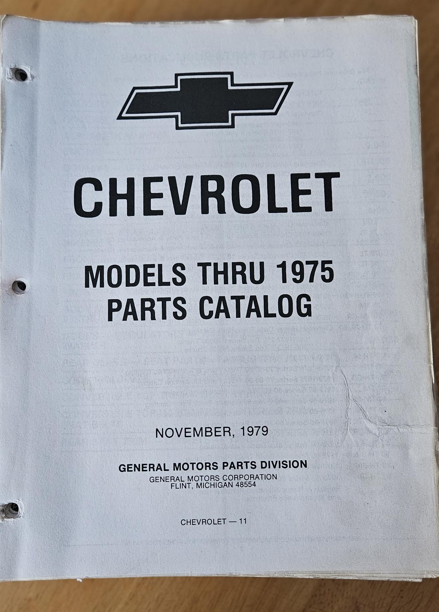 CHEVROLET PARTS BODY & CHASSIS CATALOG for models through 1975 printed NOV 1979 $100.00 plus shipping and PayPal fee.