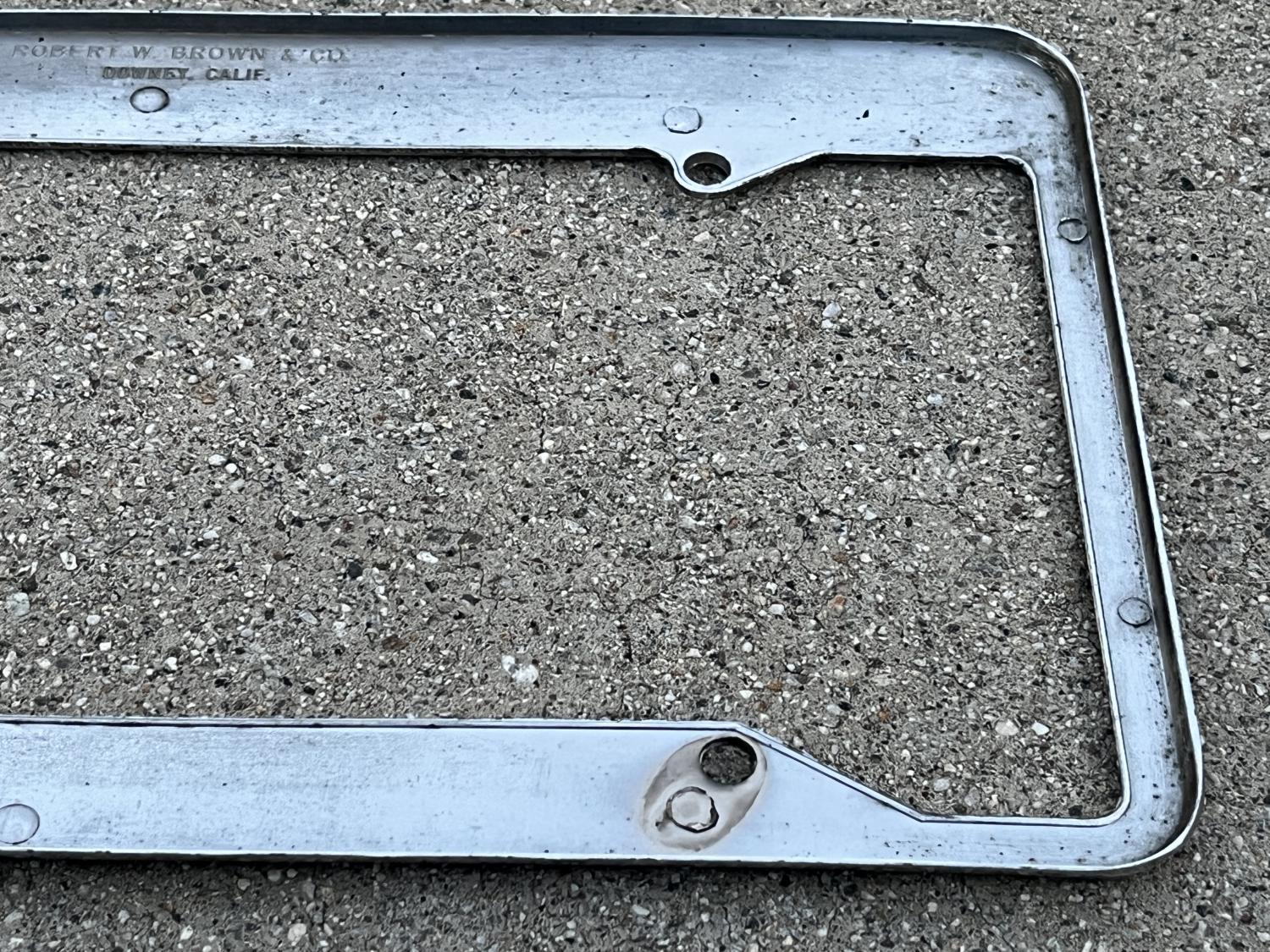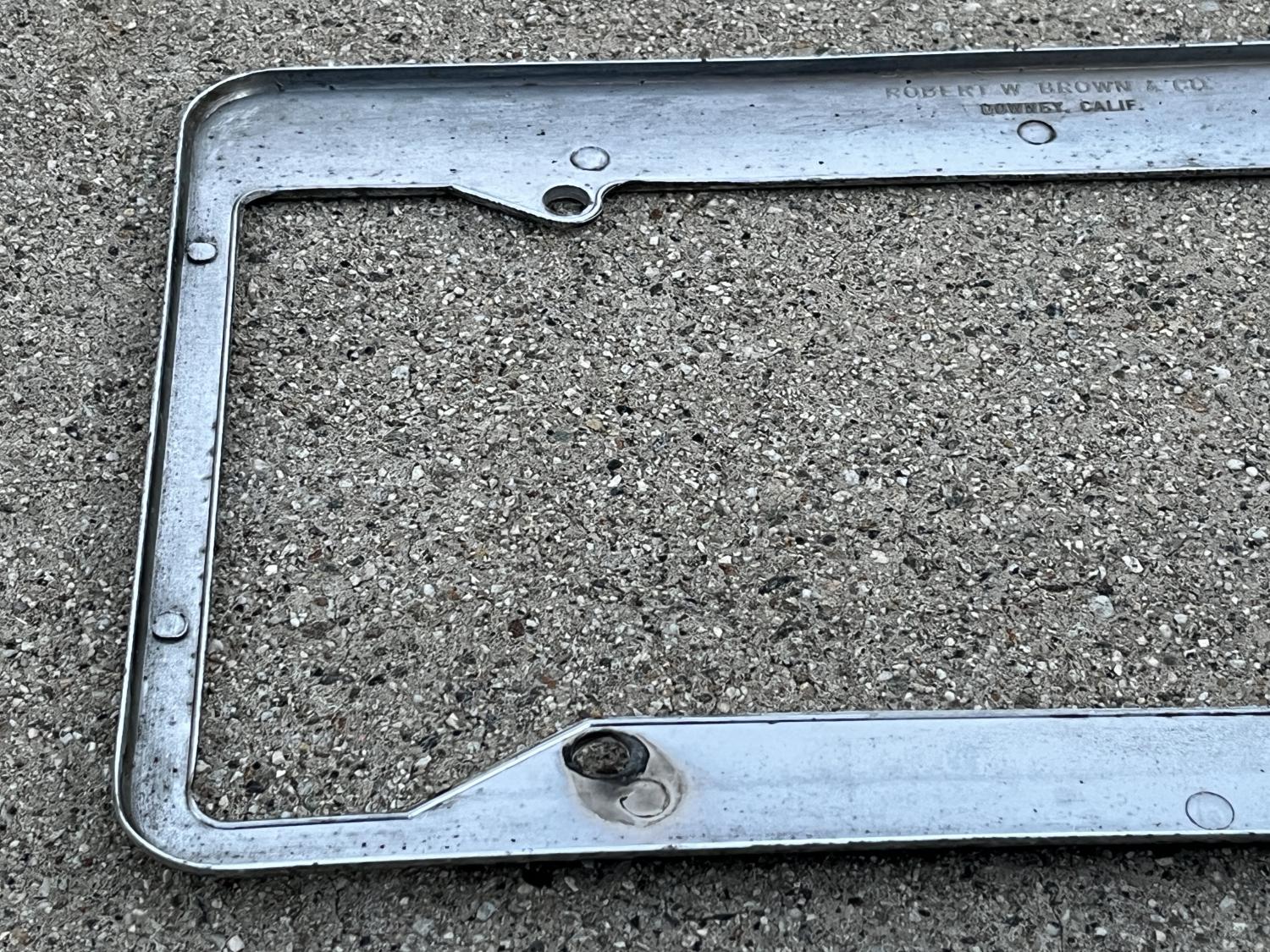 I have a genuine as leather vintage ALLEN GWYNN license plate frame available. Chevrolet Chevy - Glendale California CA. It is likely the purple version and has a very original and nice feel to it; it's not perfect but still retains its original chrome finish, and it's recently been hand polished to bring back some luster. It does not have any of the original purple paint, but looking at it in the sun, you can definitely see a hint of it and believe it was originally purple, if that makes sense, and the white lettering at the top looks to be repainted. This is a VERY difficult frame to source in any condition. It presents as a VERY nice survivor piece to me and could be restored (repainted) to look great I'm sure. No breaks, no cracks evident. It is NOT a reproduction or recreation, it is real and was cast by the famed Robert W. Brown & Co out of Downey, CALIF. Several very detailed and up close photos below to show all the detail. There is a very slight wow (top right corner viewed from the front) in it that does not affect eye appeal, again, IMHO. This is an awesome and not often found frame. Cheers all, Anthony |