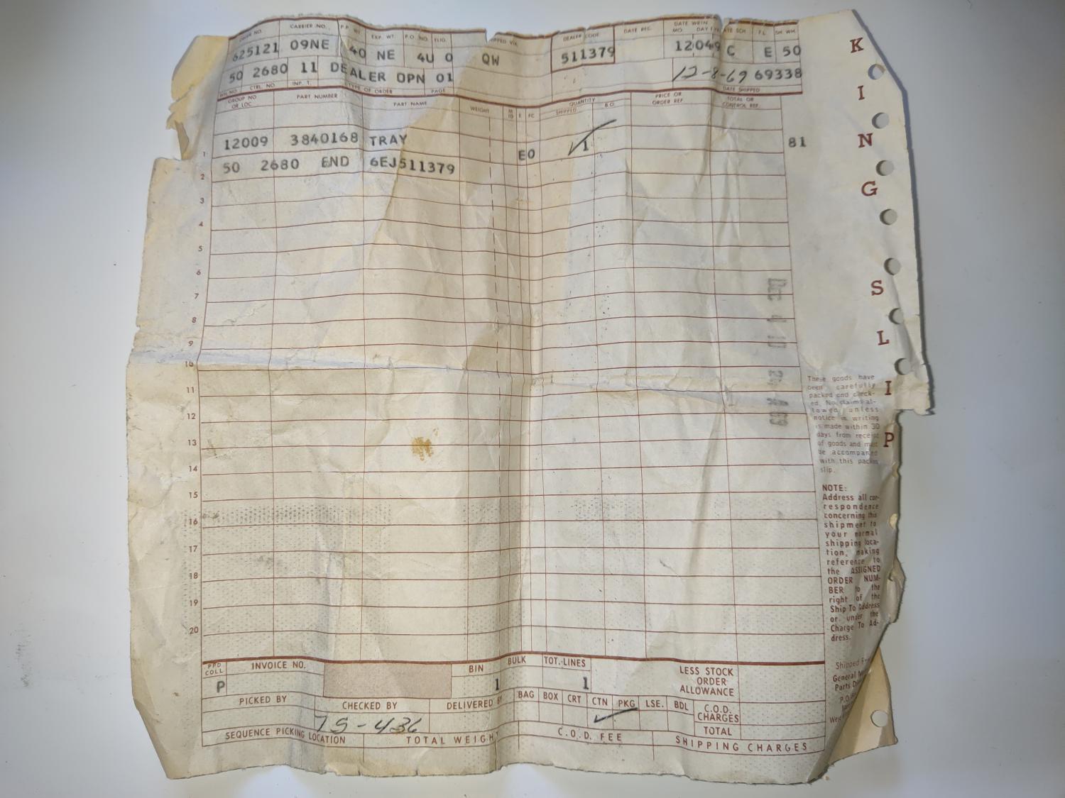 New, never installed. This tray was purchased 12/69 OTC. Never painted other than the oem assembled primer.