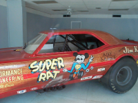 I just got back with the new owner of Jim Kirby's 1968 Funny Car. I know there has been a lot of talk about these cars in the past but I am here to set some stories straight. On a previous post by 68TopStock he said that Kirbys car was the number two car of Don Hardy produced Funny Cars, but actually it is the number three car that was produced by Hardy. The car is still in the original paint that was run when Kirby was teamed up with Harrell with the only exception that Kirbys name on the rear quarter and a mouse on wheels and Super Rat painted over the Boemler logo. The story that I got from Kirby was he dropped the Harrell logo after Dick and him went there different ways. Later on in that same year Boemler drop there sponsorship with Kirby for reasons that he didn't want to talk about, so he painted the rat on the car. The car was never rebodied like some people would like to belive, and was always owned by Jim until Today.... The cars engine is being looked at as we speek and hopefully be started up later on this week. Jim Kirby is a great all around person to talk to and I am happy to be part of this cars history. The new owner and Kirby plan on staying in touch with each other for there is much to gain with talking to a legend that was paired up with the other legend named Dick Harrell.....[img]/ubbthreads/images/graemlins/beers.gif[/img] [img]/ubbthreads/images/graemlins/
