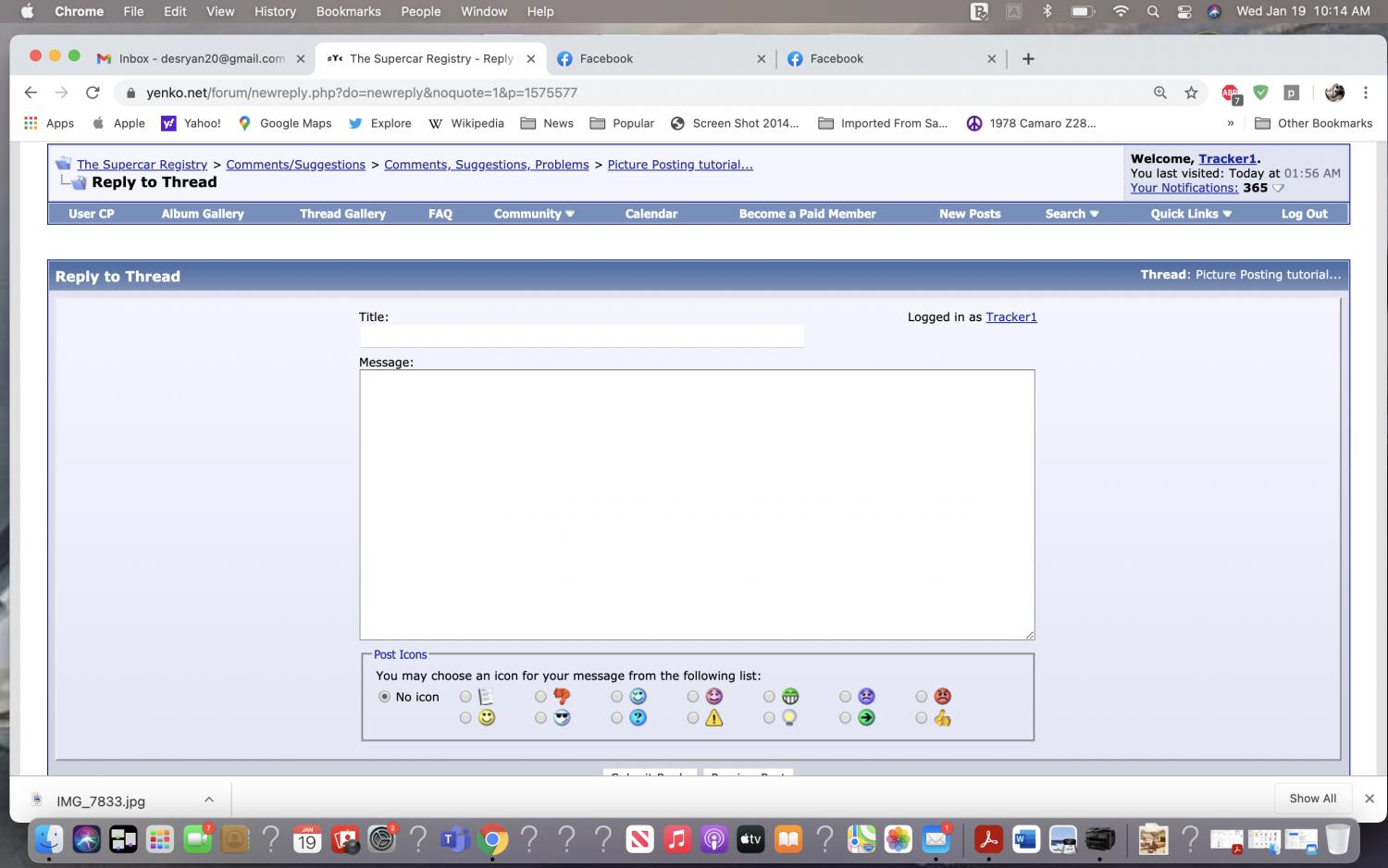 ![]() Here goes! First you'll need to go to this website Easy Thumbs software and download the FREE program. It's small and won't take up that much space on your hard drive. Once you install the software you can 'tab' to a screen that looks like this: Make sure that you change the default setting to 600, 600 or 800, 800 for bigger pictures, as in the circled areas. Also set your jpeg output quality to 80 or less...that normally keeps the file size manageable You will then need to 'tab' to the 'preview output' page and set up where you'd like to "store" the resized photos...as shown here. I normally save to the desktop for ease of finding them. You can do one picture at a time, or a bunch. The program is really fast! (make..or make all) You'll then need to sign up here: Photobucket The initial screen looks like this: ![]() The sign up page looks like this: ![]() Once you sign up, you'll come to this page: ![]() You can load one picture at a time, or as many as 19 pictures at once!(listed as submit multiple pictures) Once the pictures are uploaded, all you have to do is 'right click' as shown in the photo below and select 'copy'. Then make your post on Yenko.net and wherever you want the picture...skip a line and then hit paste! ![]() That's all there is to it...and that concludes the tutorial for now. PM me if you have any questions Bruce