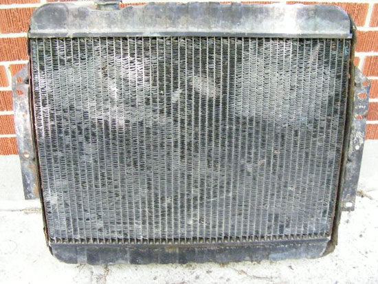 Had this in my stash for years, have no idea what it came out of other than the fact that it's a 4-row for an automatic trans application. There are no ID tags save for the one I'll post a pic of in a moment, and the only stamped letter on the radiator is the letter "K" on the top tank just above the tag. The upper mounting holes are ~27 1/4" apart, and the core is approx 25 3/4" wide.