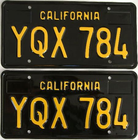 My plate # YQX 784 was stamped in 63??? I'm not tracking you on this. Anyway, this is good news for some guys. Bet you there will be an increase of Black and gold plate sales on E-Pay. ------break------ Next time one of you Cali guys go into the DMV please ask the clerk how i go about getting the Month stamp. When I had my plates sent out for resto the Month sticker had to come off, heck it was so faded anyway. The year stickers I still have, I peeled off about 30 years worth, the stack of stickers is about 1/4 inch thick or more. BTW, I have my registration PNOd over here, so those plates stay in the system. I get a notice each year from CA DMV asking what i want to do. PNO or register the plates. Danke, john |