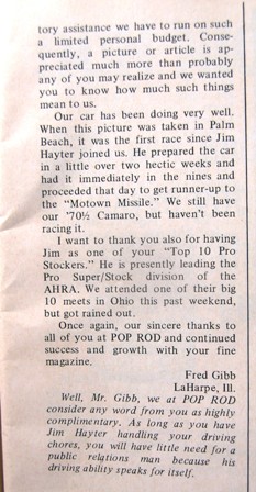 Rodding Readers section which is more or less Letters to the Editors today. I have read this issue a few times just noticed this one letter. Thought some might get a kick out of it esp as to who wrote it.