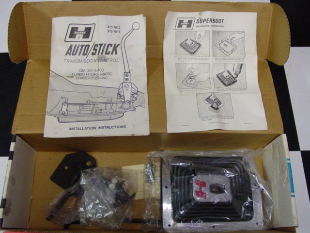 New in the box Hurst Auto/Stick, complete shifter, handle, install kit, super boot, and instructions, still in the Hurst box...