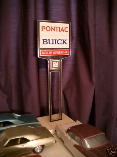 In September 1969,General Motors implemented a plan of standardizing the look of GM dealerships.The "Signs Of Leadership" are shown here.In fact the signs you are viewing are 1:25th scale models that were made and distributed around this time.They were often seen on salesmen's' desks.Today they go great with scale model dioramas and promo car collections.They aren't easily found,but I would aim for toy & model shows too.