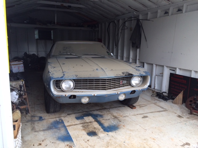 Original owner 69 Z28 with 14K miles. Glacier blue with black stripes,flat hood,no console,am/fm,tilt,rosewood wheel. Owner pulled it out of storage and sold it in April(missed oppourtunity) and car is being detailed/cleaned and kept original. Owner ordered car from Tom Brooks Chevrolet in Lenoir, NC and ordered it with the JL8 option and it kept getting delayed and finally got a letter saying the option wasn't available anymore or more delays so he scrapped that but had a JL8 service package installed with less than 500 miles. He then pulled the 302 around 2K miles and got a pre-production LT1 with experitmental(per the owner) from his dad that worked on a factory backed corvette race team. The owner pulled the LT1 prior to the sale and the 302 is now back in it. The owner had 4 NOS chambered exhaust systems, 2 for Camaros and 2 for 69 Chevelles, he let one go with the sale of the Z. The only non #'s matching component is a M22. The owner had planned to SCCA road race it. Car was in storage since 1973. Here are some pics.