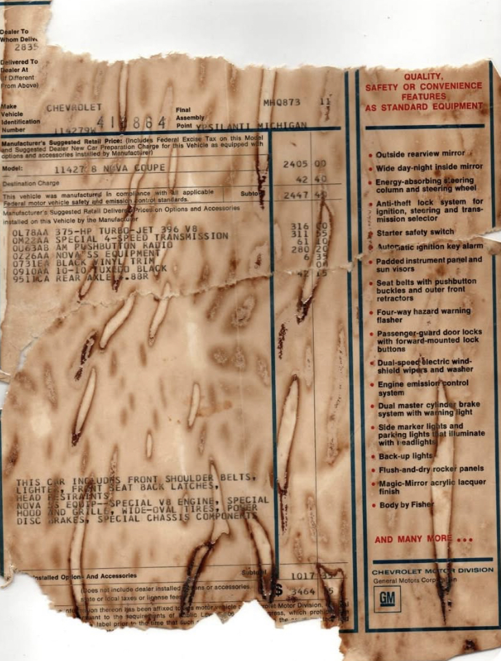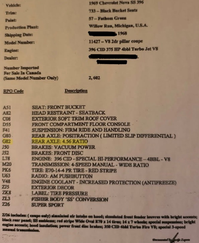 Says fisher body sheet says it’s a COPO