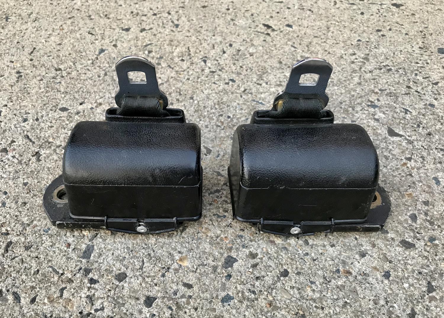 I’ve got a very nice pair of rear seat belt retractors for 1972-75 GM F-body cars. These work with the small seat belt buckles introduced mid-year 1972. (SOLD)