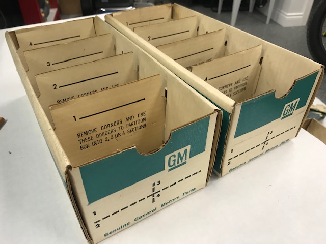 These are great for putting small parts in them. Great for your GM memoribilia These can be unfolded and lay flat for shipping. I have 9 of these. They are not all perfect as they were used in parts dept. $16 each + shipping |