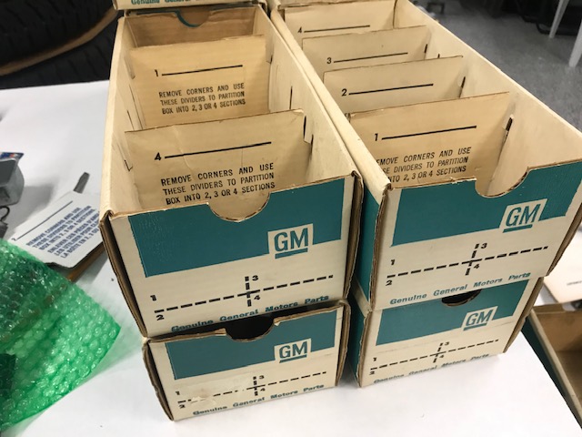 These are great for putting small parts in them. Great for your GM memoribilia These can be unfolded and lay flat for shipping. I have 9 of these. They are not all perfect as they were used in parts dept. $16 each + shipping |