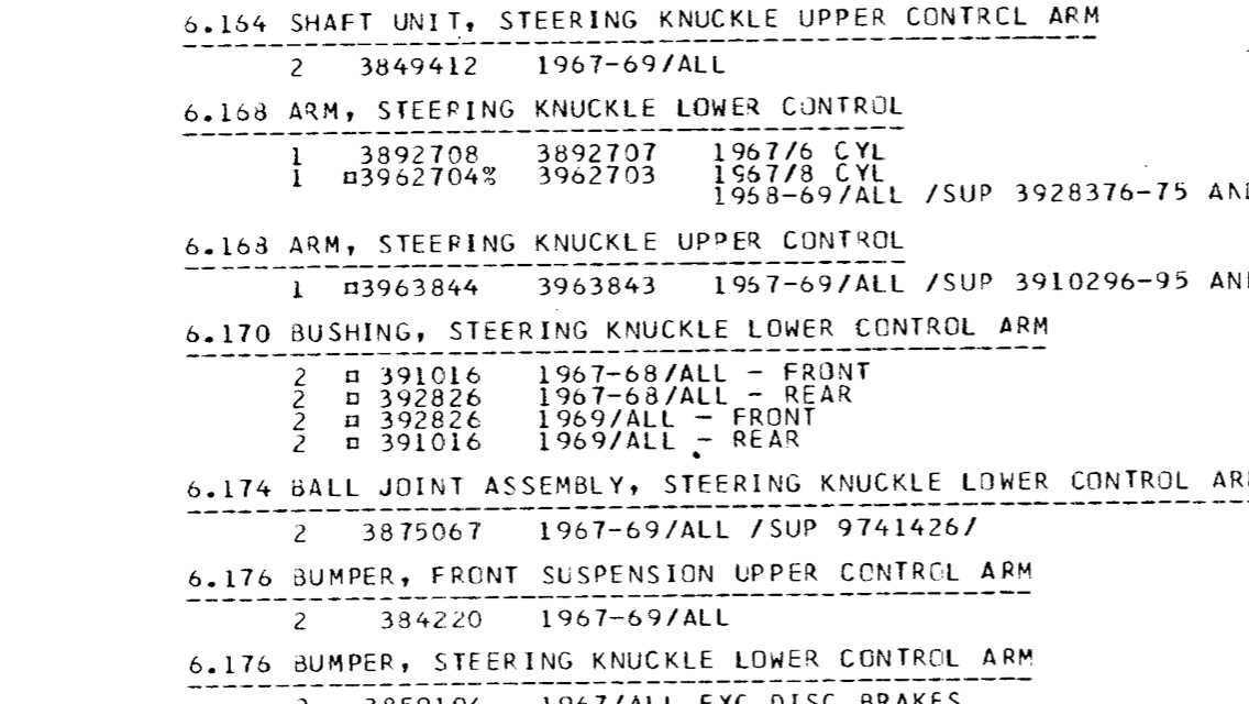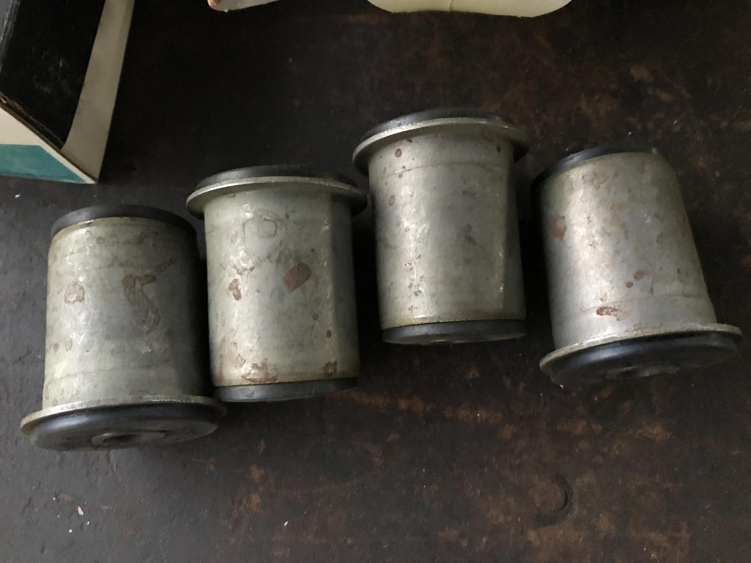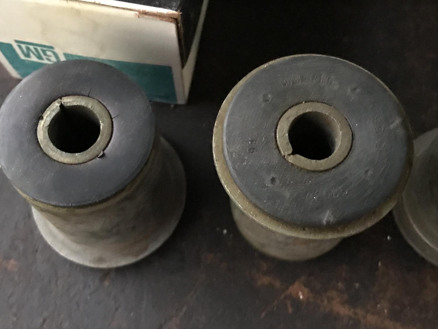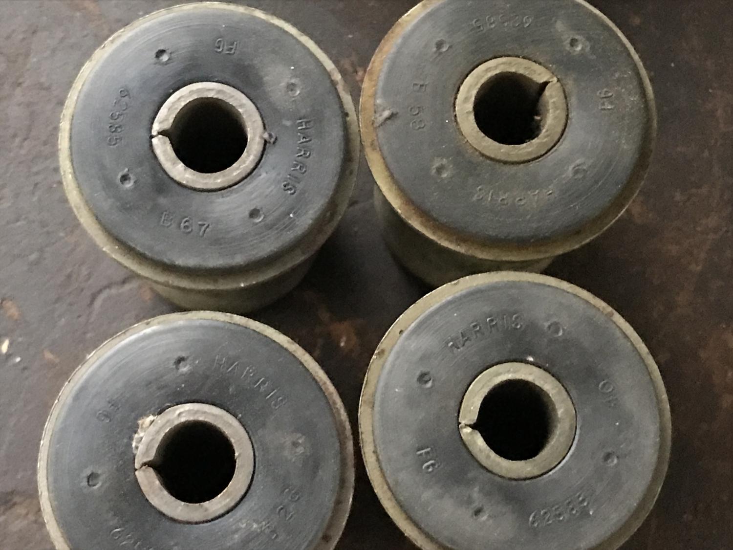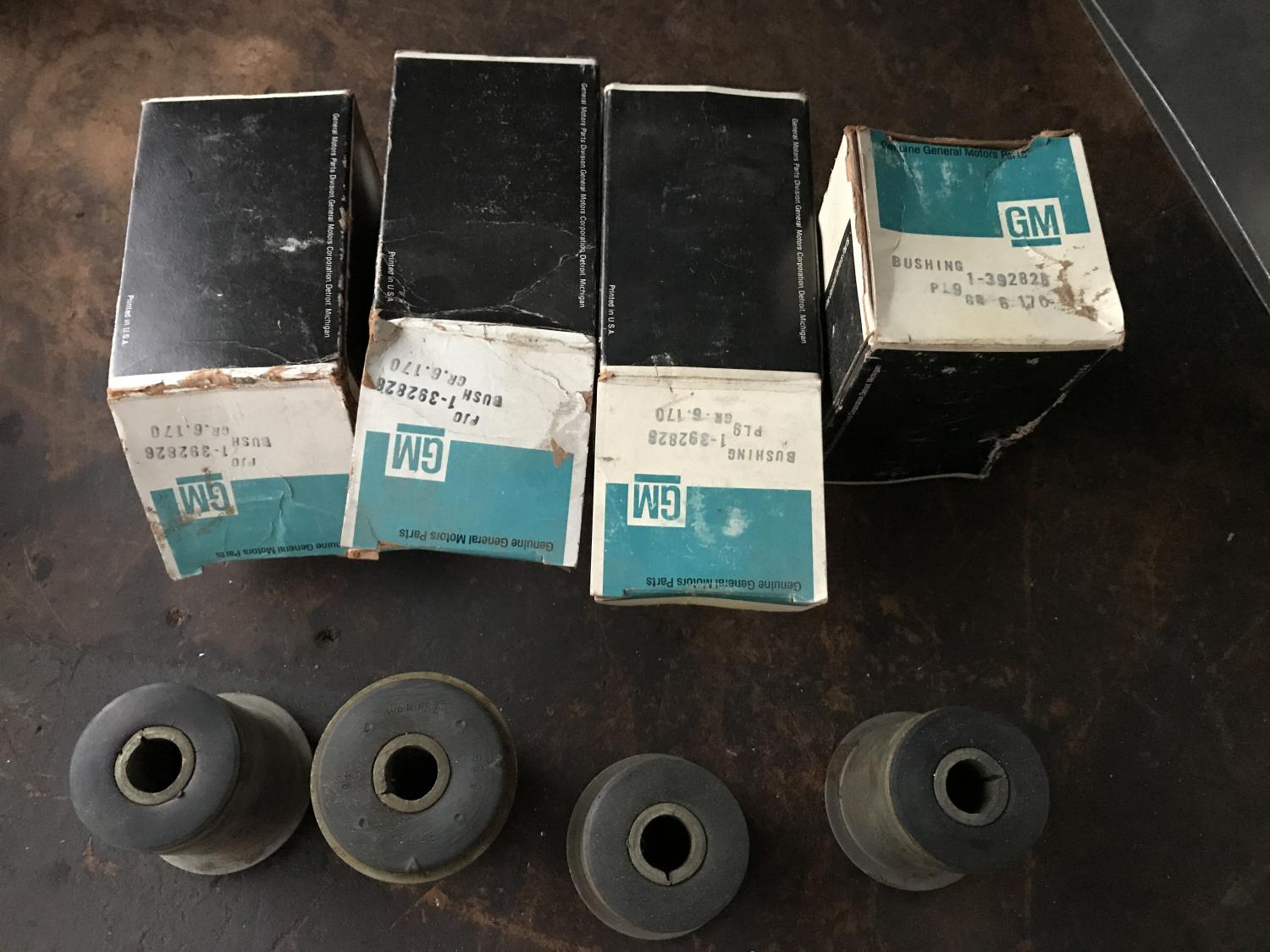 Just what the title says; I have two pairs of NOS GM 392826 bushings here. Book says "all" (I presume most models) 67-68 lower control arm rear and 69 front. Camaro Chevelle Nova and others... original GM, stamped / embossed HARRIS 62585 $80 per pair shipped, $150 if you want all four. These are nice, new, as expected. Thanks all, Anthony |