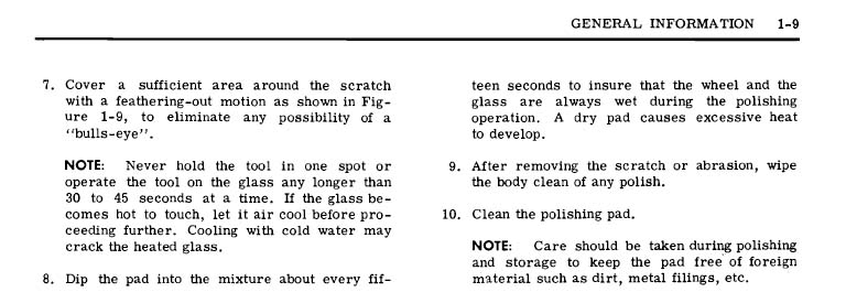 Looks fantastic! There is also some additional info about glass polishing in the Fisher Body manual. The tip about marking the scratches with a crayon from the inside might be helpful.
