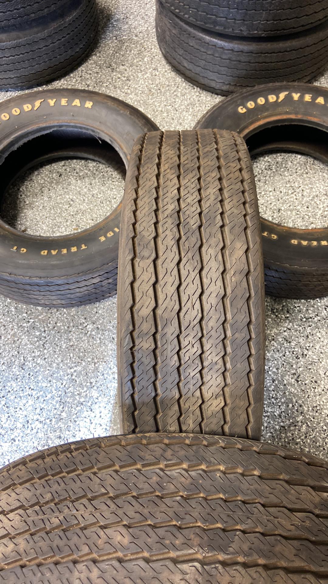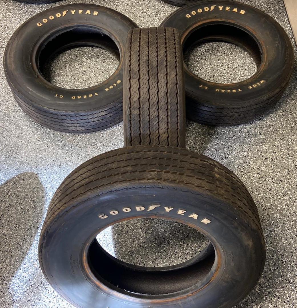 Five E70-15 Goodyear Wide Tread GT Tires. (Specific to 1968 1969 Camaro Z28) not sure about other makes and models. I have No idea how old the tires are but these were on a running car that had the tires changed out from a 69 Z28 Camaro. NO Garbage tires as they all have good tread life still with NO cracking. Just need a good cleaning with an SOS pad IMO. $1000 for the set of five tires ! Thats $200 a tire, Retail is $465 each for new ones if there not back ordered. Sorry PICK UP ONLY in Crivitz Wisconsin at my Partners Home NO SHIPPING.