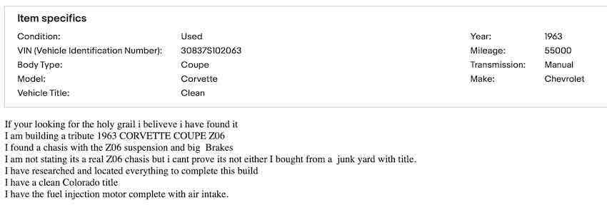 The seller's description is about as non-committal as you could ever muster, but it would be cool if this were an original Z06 Corvette.