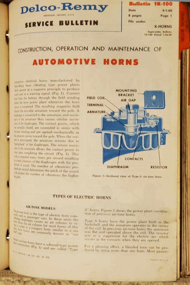 Full of bulletins and specs and technical info. They just kept adding the new bulletins and didn't remove the old ones. Covers the 50's (earliest I saw was 1949) thru the 60's. Coils, distributors, alternators, starters, regulators, etc. $30 plus media shipping