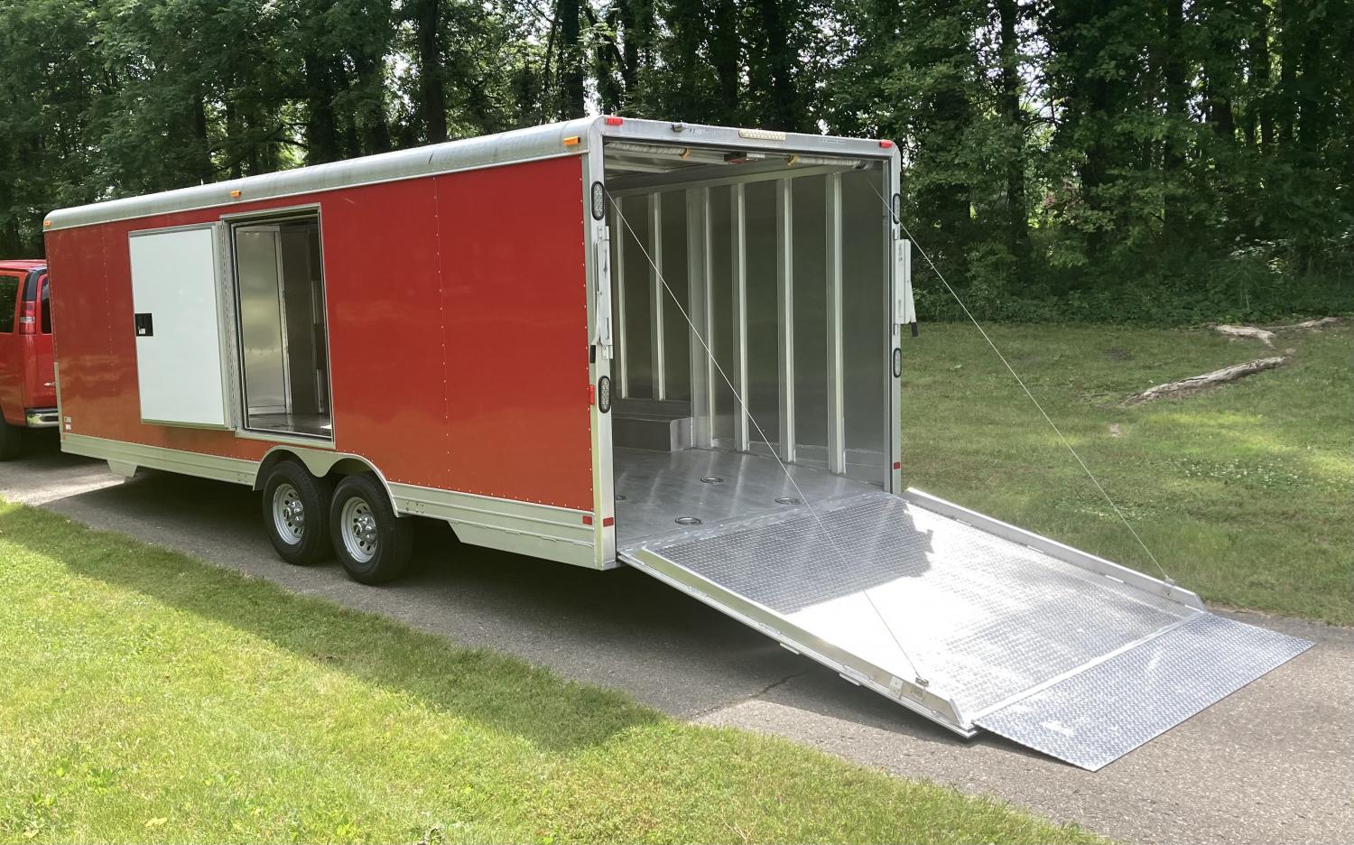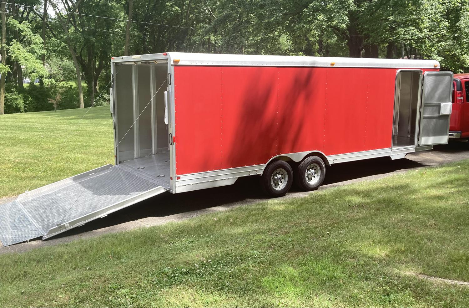2008, All Aluminum, 24' enclosed car hauler. Very little use, in excellent condition. New tires last fall. Ordered with the driver escape door and a couple extra "D" rings. Beavertail, Interior light, Easy Lube 5200# Axles, Spare tire.