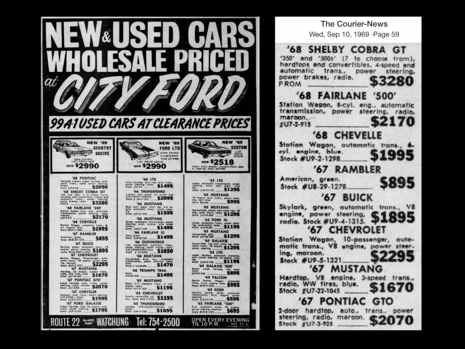 Were you in NJ then too Dave also any chance Benedetti Oldsmobile rings a bell? Check out this Ad below, Cobra part seems a mistake being they were gone after ‘67 but was the Shelby an Auto w/ AC also what mileage when traded in? If no chance this one fits, please share more details about the car. ![]() ~ Pete .