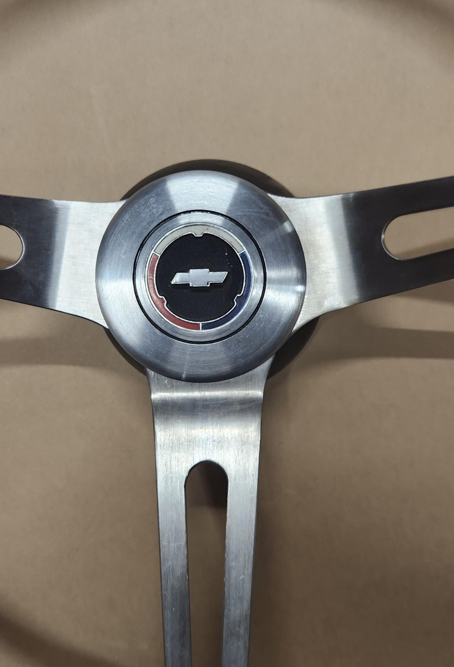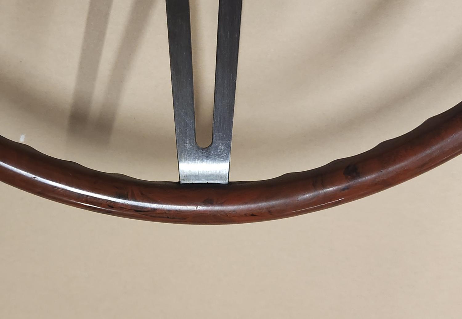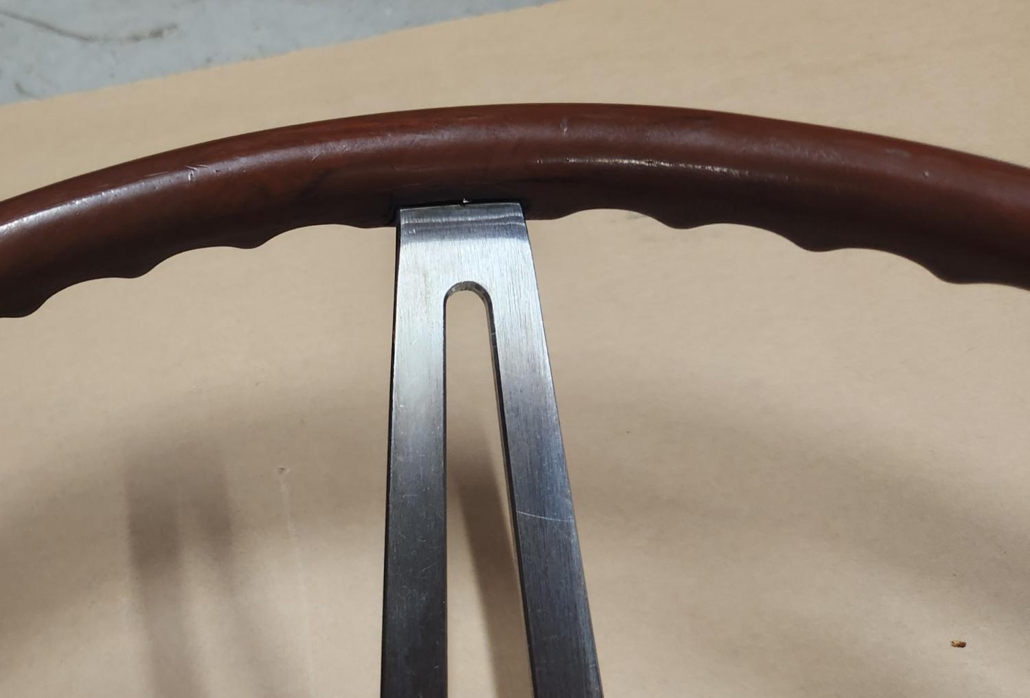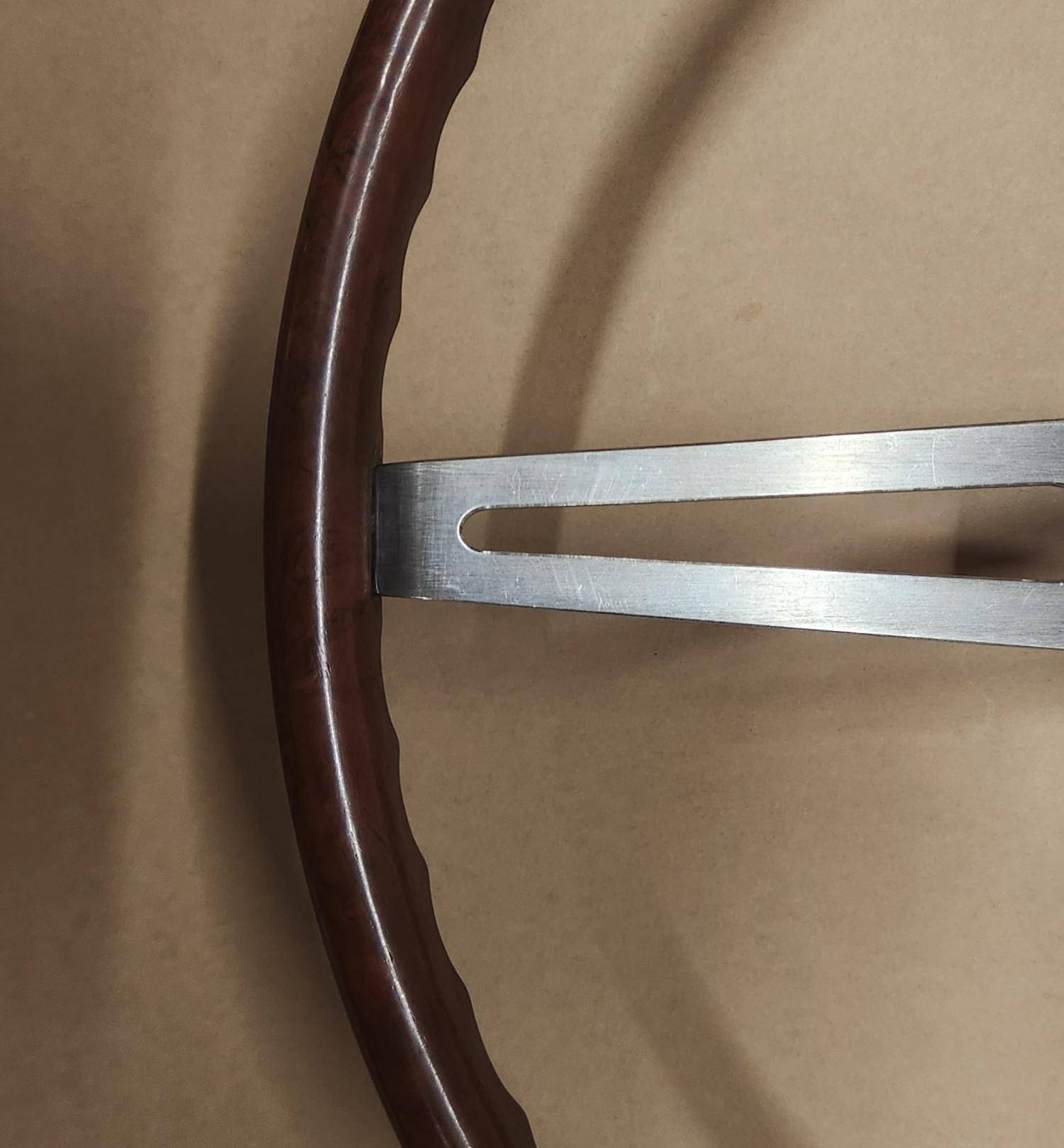 This very nice condition with one very small crack on the backside only as shown in attached pictures. It is a complete wheel assembly and includes horn button, contact and hub as shown. $1750. PM or email [email protected]