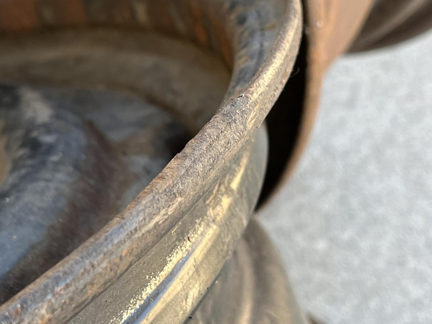 I have a set of four 4 Chevelle disc brake plain steel wheels - the so-called dog dish ones available here. El Camino trucks too. They spin straight and have only a minor rim nick or two as shown. One sat for the longest time face up and rusted a bit in the spider web as also shown. All lug holes good and not wallowed out. I believe these are SS / SS396 plain wheels - they will certainly clear disc calipers - both four and single piston versions of 1968 and 1969. Will fit many other GM cars of the era as well of course. Three are Kelsey Hayes rims, one is an NI Norris Industries N19; see photos. Not getting any easier to find, these... A couple of the "XE" stamp are lighter, as shown. Clearer in person; takes some imagination through these photos; sorry about that. The inside hoops and beads of the wheels are very nice - I recently removed three ancient tires. Two bumps by the valve stem hole on all as well, of course. These are absolutely as found, and I suspect, original black paint - but, of course, I cannot be totally sure on that - just using context clues. Take a look at the photos again, these are hard to find rims anymore, IMHO. Could be vigorously cleaned and used as-is - these are priced less than repops... also, a good starting point to totally restore as well. Cheers Friends, Anthony |