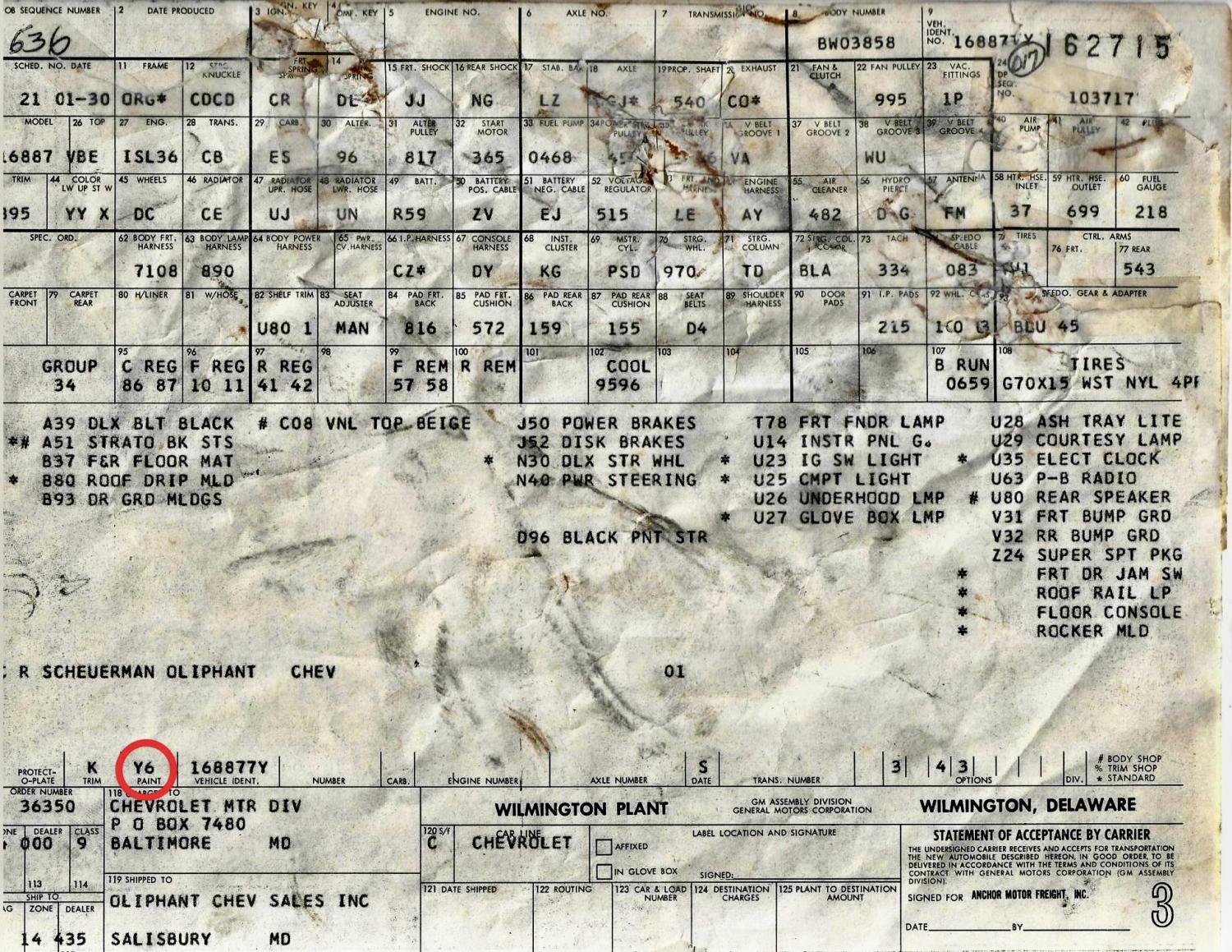 A ‘67 Y6 paint is Butternut Yellow with Beige Vinyl top, plus the D96 black stripes. Really a neat rare car.