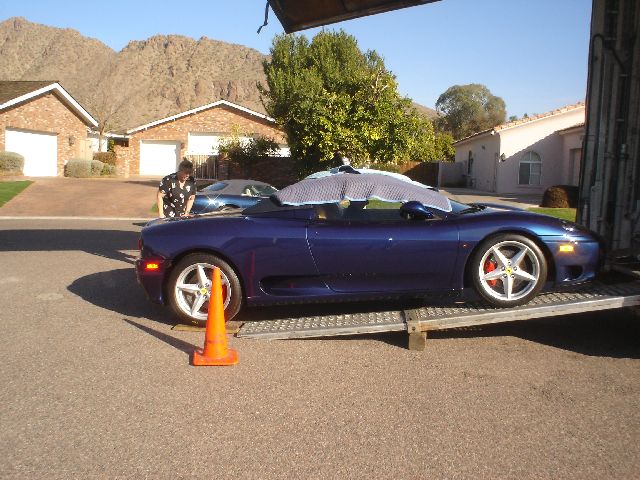 In previous discussions for reputable car shippers someone had recommended Demoise Trucking. It is a family run operation. I talked with Bill Demoise who seemed customer focused. Took a chance and had them deliver this car. It was purchased in the Hamptons, put on a flat-bed to Greewich, CT, and then shipped to my home in Scottsdale. It was secured on the top level of the trailer and to the front. Over the tire straps with no suspension components involved. Never out, on time, great communication from the driver-