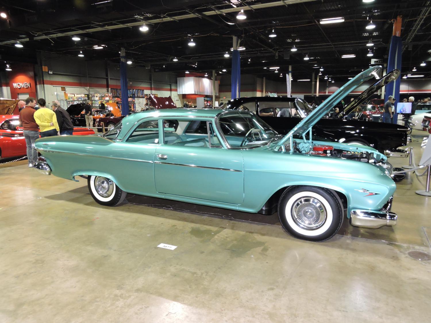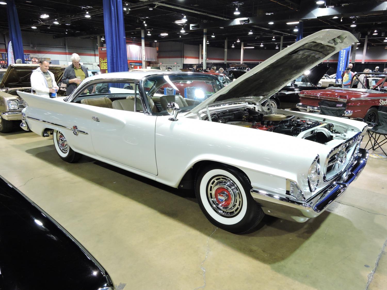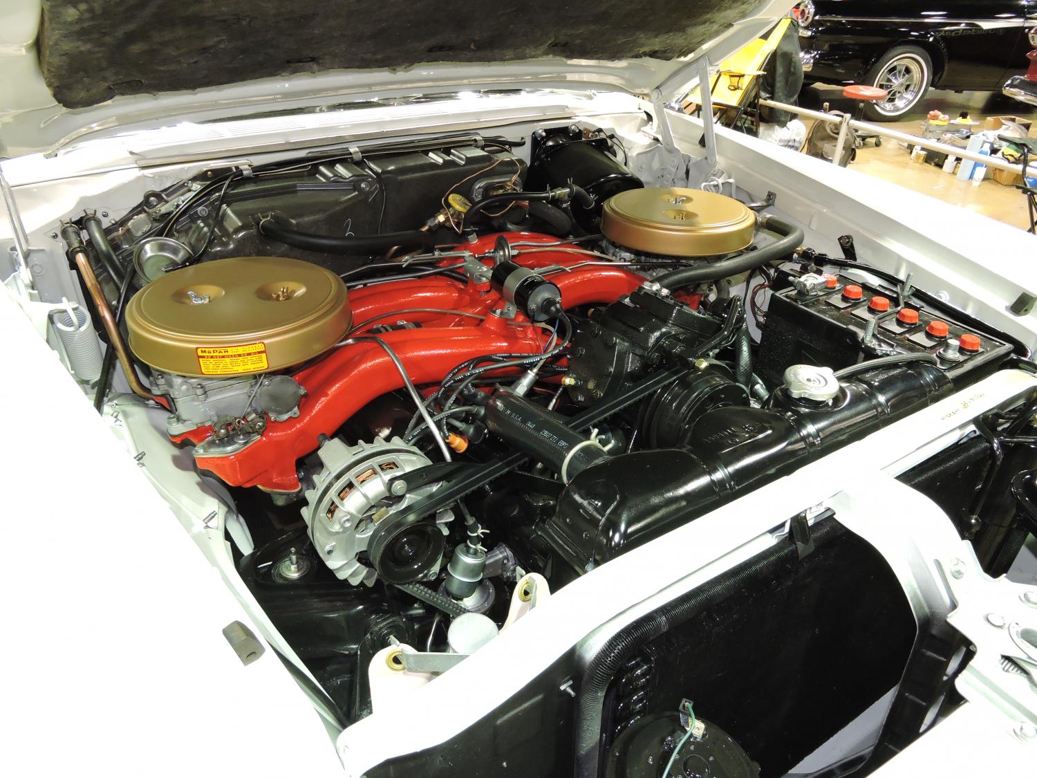This 61 Chrysler 300G in Alaskan White is a long ram 413 car producing 375 horsepower. There was also a short ram version of the 413 in 61 that produced 400 horsepower. M. Woodard had this car at the show.