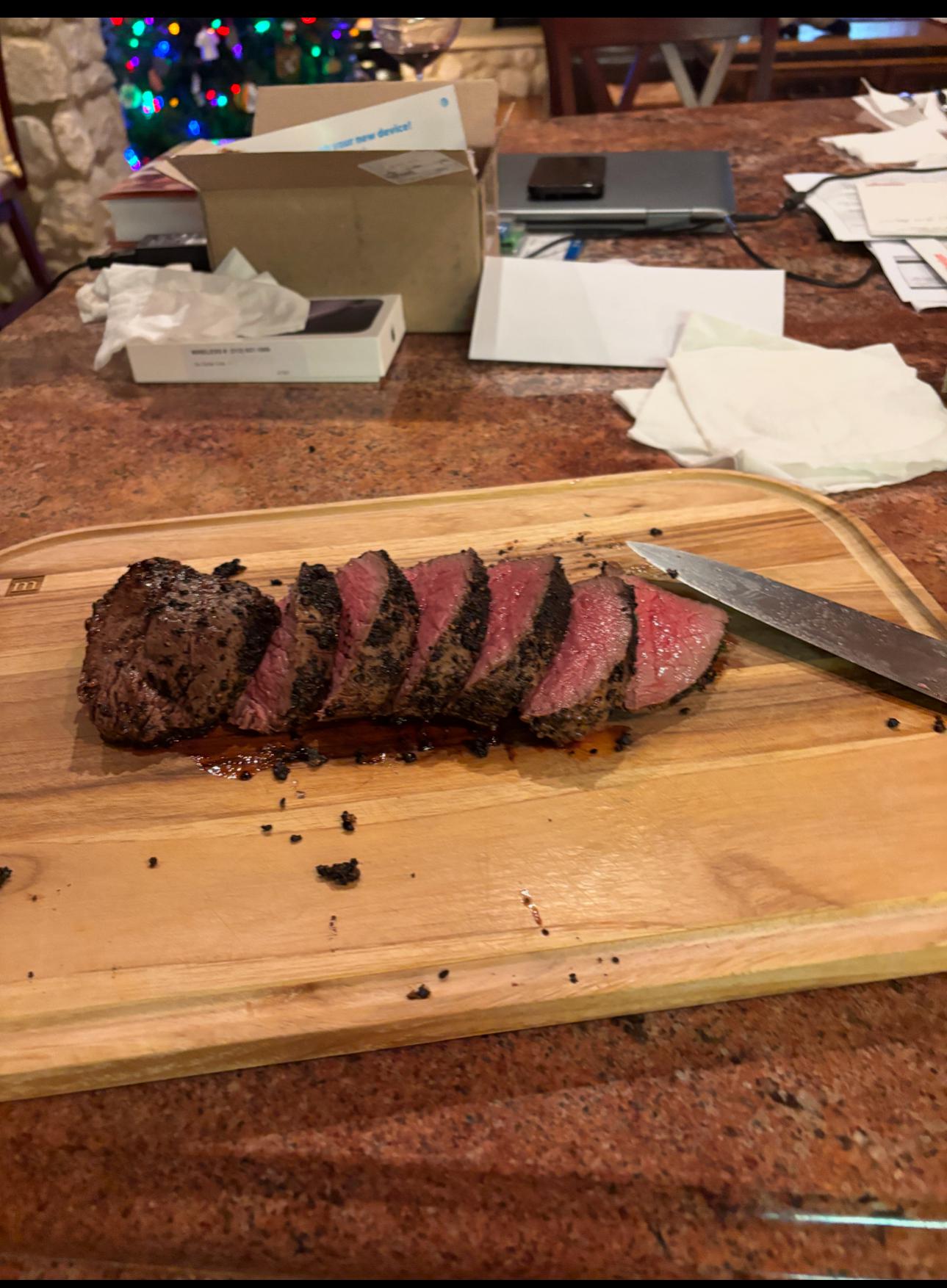 A little too hectic around here to post last night; but it was a small two bone prime rib for us this year. Cheers Friends, and all the best in 2025 from our family to yours! Anthony |