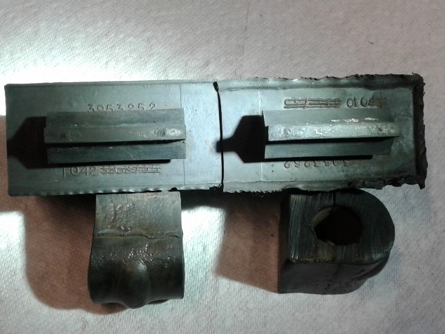 68 and 69 Camaro/Firebird rear axle rubber snubbers. These are the two snubbers that mount to the bracket that bolt on the frame rail to stop the axle from bottoming out. Excellent original pieces. If you notice the original part number scratched out from the factory new one's put in and the mold marks on the side of the one and on the face of the other. Extremely nice pieces as pliable as the day they were made. SOLD $100. SOLD