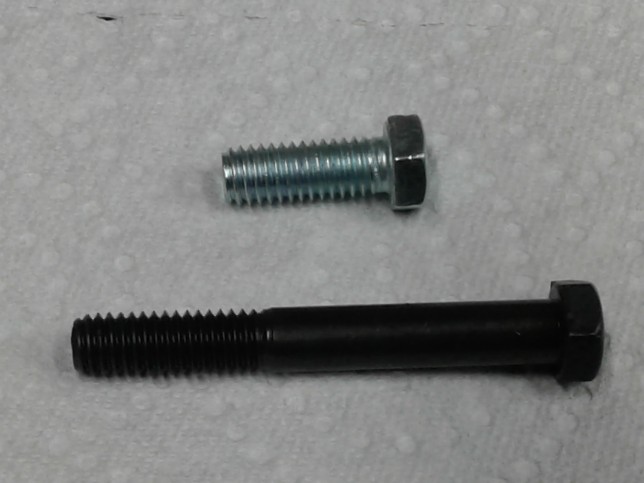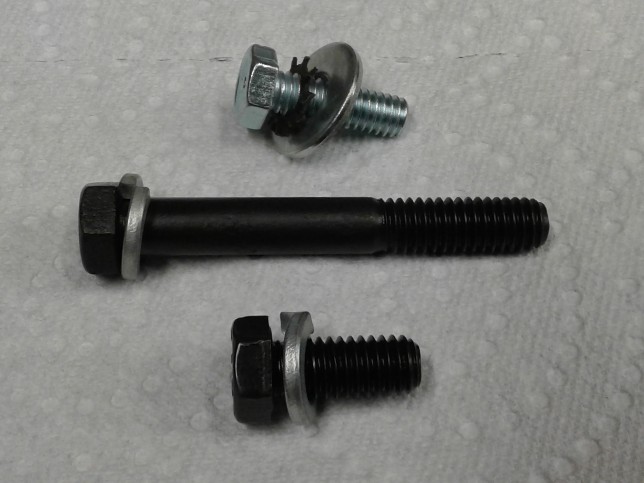 63 through 65 and 66 through 72 left hand alternator mounting bolts small block. Excellent restored condition. Included in the set is a long CP lower pivot bolt a short RBW mounting bracket to exhaust manifold bolt and an original WB head marking top adjusting bolt with star washer and thick flat washer. $50. Two sets available. Excellent restored pieces. (X)