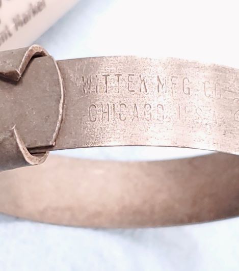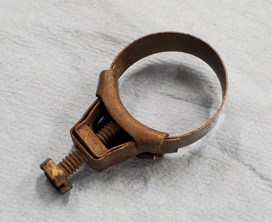 Original unrestored DCM one and a quarter inch hose clamp. Nicest you will find with original coloring.$35. PPFF ************SOLD************