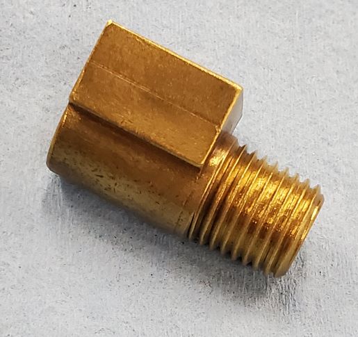 Original assembly line installed big block 3/8 fuel line to fuel pump fitting. Brass with weather head stamp for 65 and 66 396 and 427 cars. $35. PPFF ************SOLD************