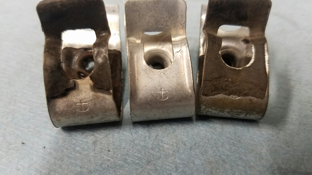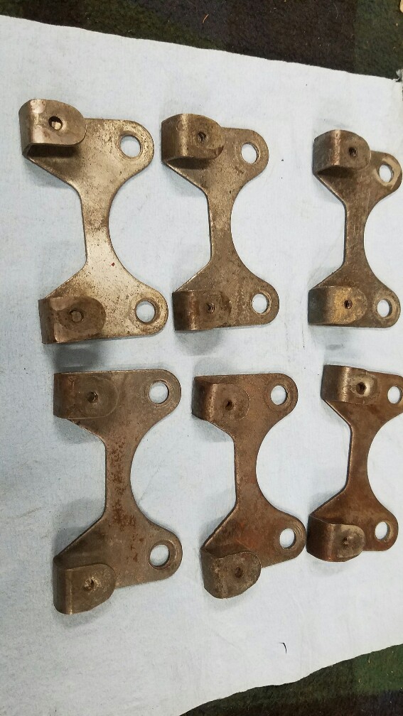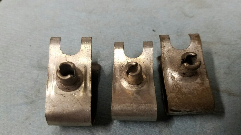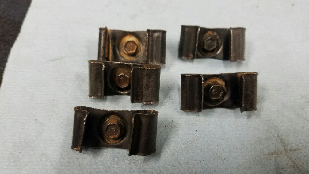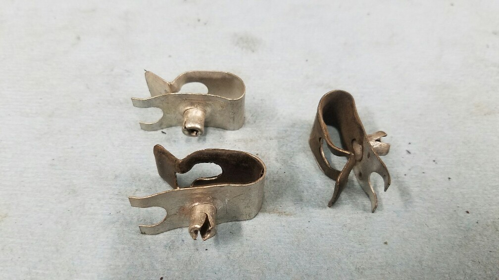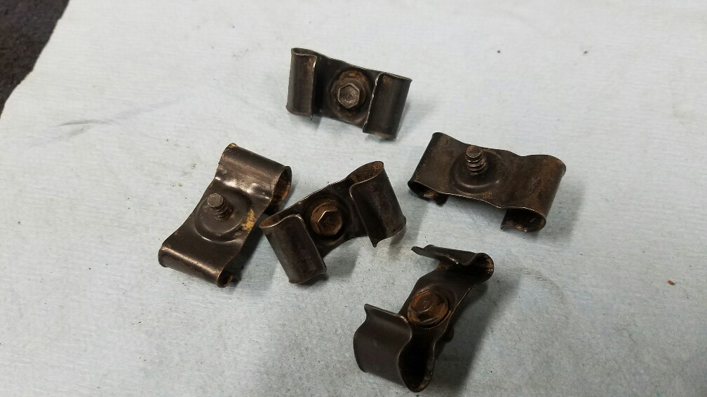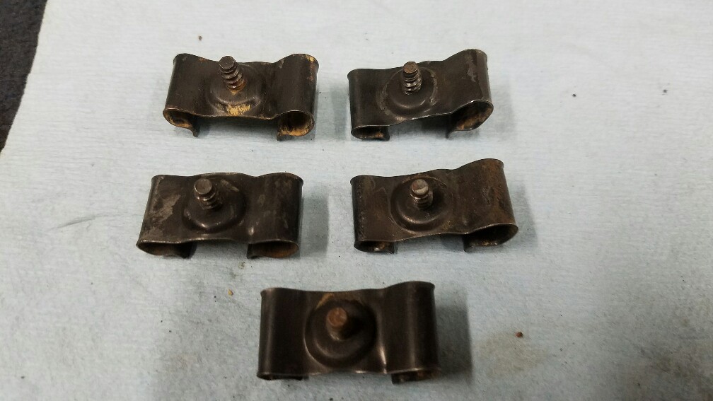 Battery cable to subframe, frame and alternator bracket Clips. 3 original anchor stamped cable clips. They've been stripped and replated 20 years ago needs the rubber Vulcanizing dipped on again. Real deal. $30 each or $80 for all three.