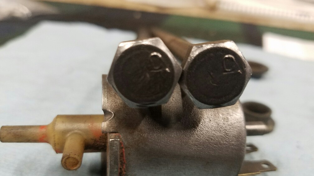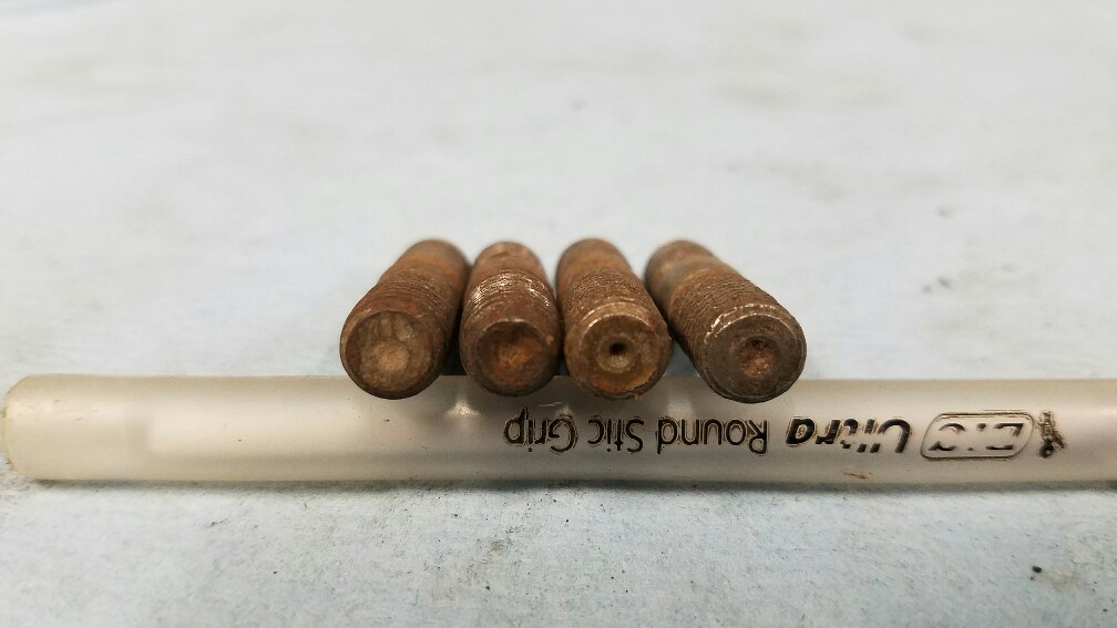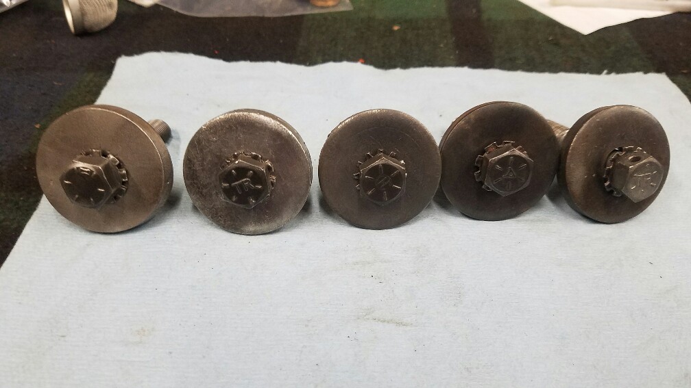 Very nice unrestored set of dimpled Holly carb studs. Very nice great patina perfect for a survivor or will clean up beautifully for a restored car. $80
